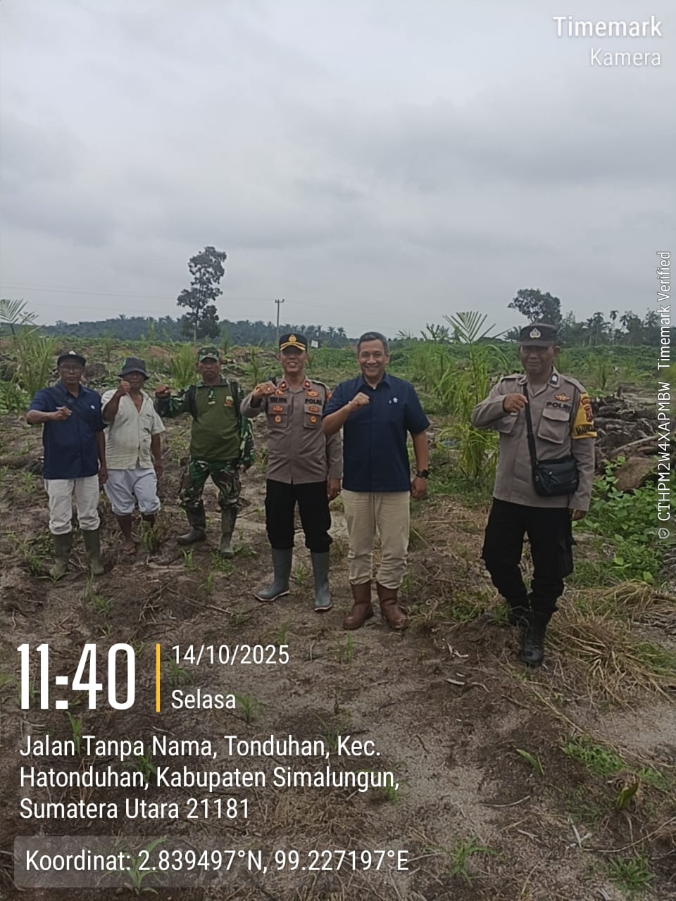 SIMALUNGUN – Kapolsek Tanah Jawa, Kompol Asmon Bufitra, S.H., M.H., melaksanakan serangkaian kegiatan strategis di Kecamatan Hatonduhan, Kabupaten Simalungun, Selasa (14/10/2025). Agenda tersebut mencakup sambang dan patroli dialogis ke Kantor Camat Hatonduhan, serta menghadiri program ketahanan pangan berupa penanaman jagung di Afdeling I Kebun PTPN IV Regional II Tonduhan. Seluruh kegiatan ini merupakan bagian dari dukungan terhadap visi Indonesia Maju dan Indonesia Emas 2045.