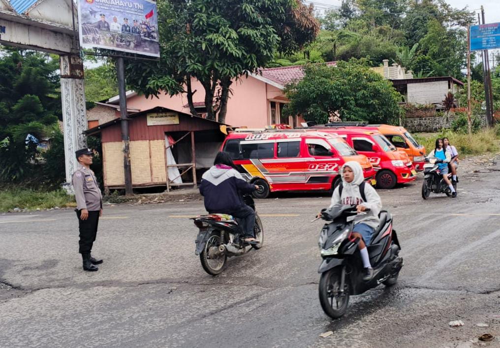 Kegiatan strong point pengaturan lalu lintas yang dilaksanakan sejak pukul 07.20 WIB itu berlangsung di lokasi strategis yang kerap padat kendaraan, terutama pada jam sibuk keberangkatan sekolah dan aktivitas masyarakat pagi hari.