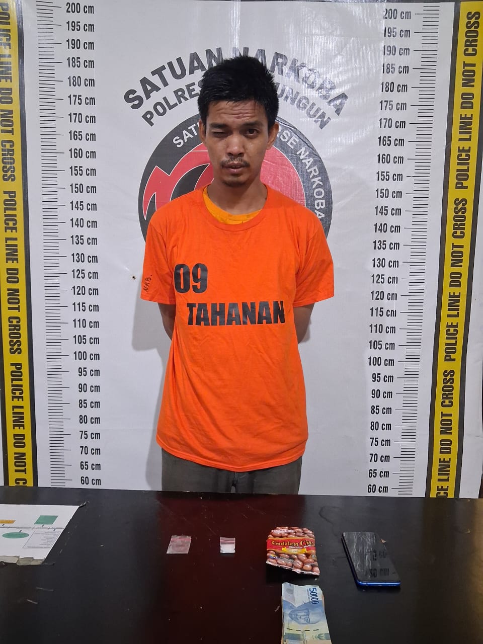 Dalam operasi tersebut, petugas mengamankan seorang tersangka bernama Azhar Ihsani (31), warga Jalan Medan KM 10, Kelurahan Sinaksak, Kecamatan Tapian Dolok. Saat diamankan, tersangka tengah berada di teras rumah warga sambil menunggu pembeli.