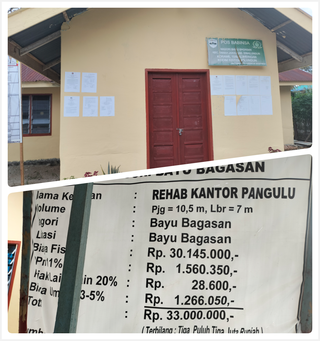 Tidak hanya itu, kantor Pangulu yang baru di rehab menggunakan anggaran dana Nagori menggunakan  cat warna kuning, begitu juga Lantai menggunakan keramik. Namun kerangka  plafon tidak diganti, karena ada yang mengalami lapuk.