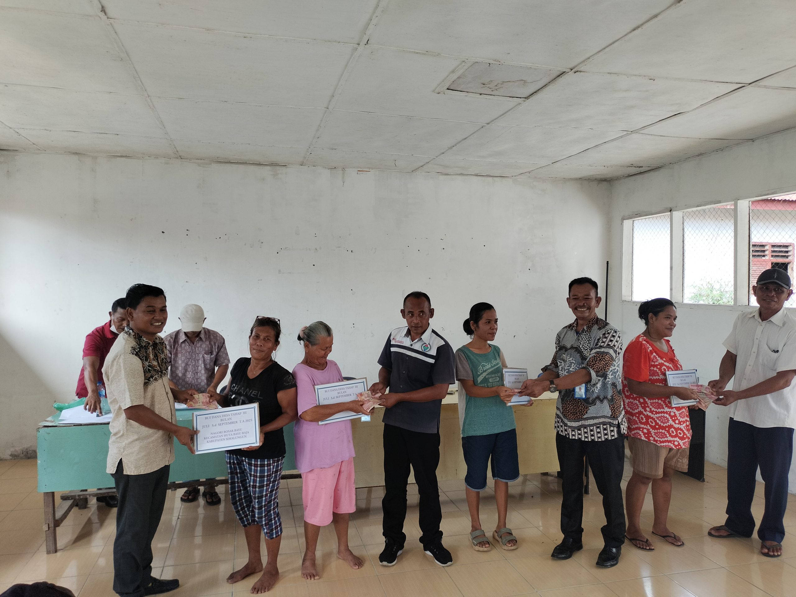 HUTABAYU RAJA – Pemerintah Nagori Bosar Bayu, Kecamatan Hutabayu Raja, Kabupaten Simalungun, menyalurkan Bantuan Langsung Tunai (BLT) Dana Desa tahap III Tahun Anggaran 2025 untuk periode bulan Juli, Agustus, dan September kepada 18 orang penerima manfaat.