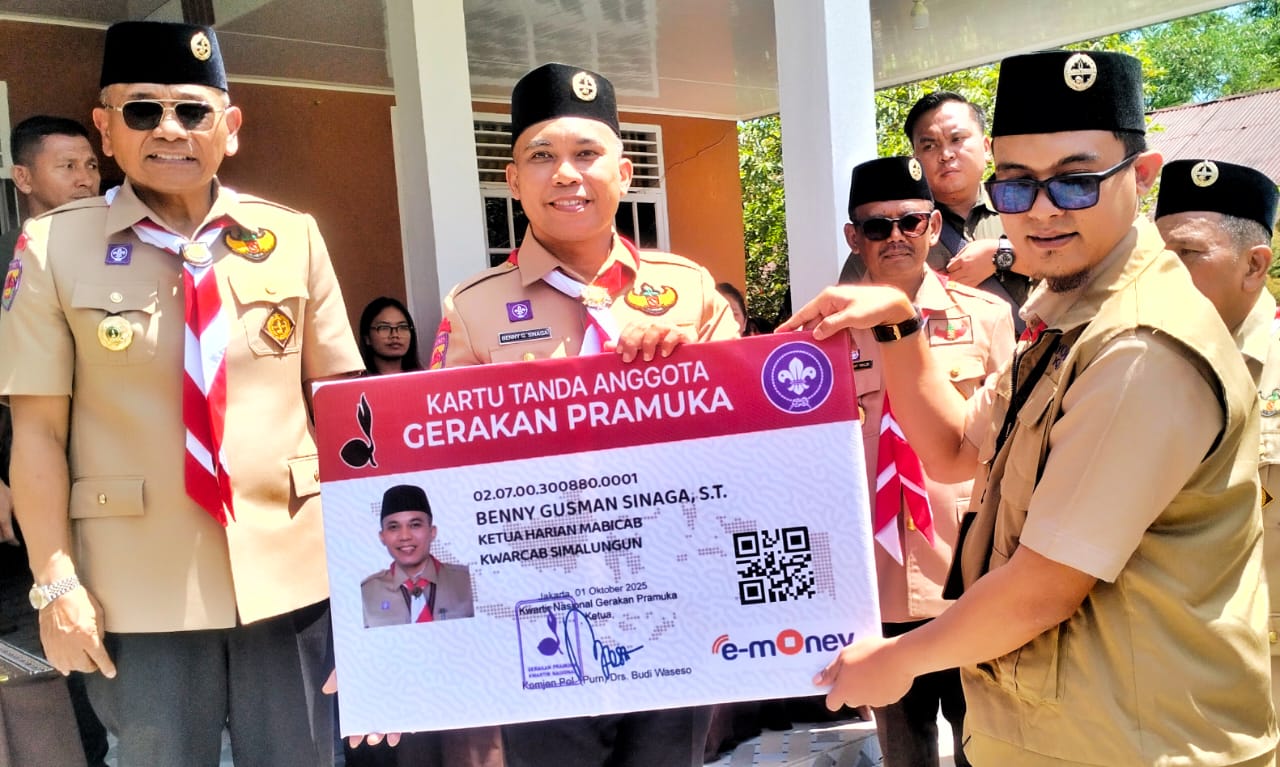 Usai upacara, dilaksanakan penyerahan kartu keanggotaan Gerakan Pramuka secara simbolis kepada Bupati selaku Kamabicab, Wakil Bupati Benny Gusman Sinaga selaku Ketua Harian Mabicab, dan H. Zonny Waldi selaku Kakwarcab Simalungun.