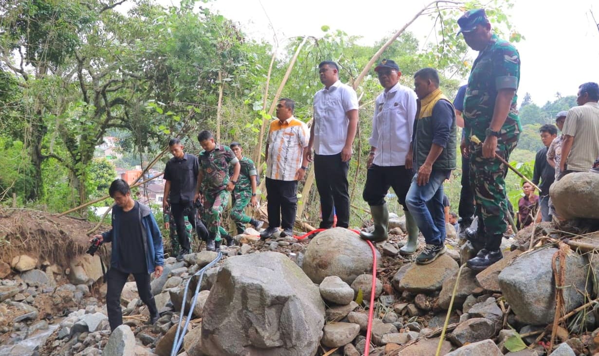 SIMALUNGUN – Bupati Simalungun Anton Achmad Saragih mendampingi Gubernur Sumatera Utara (Gubsu), Muhammad Bobby Afif Nasution meninjau sejumlah titik banjir di Parapat, Kecamatan Girsang Sipangan Bolon, Simalungun, Sumut, Jum’at (28/3/2025).