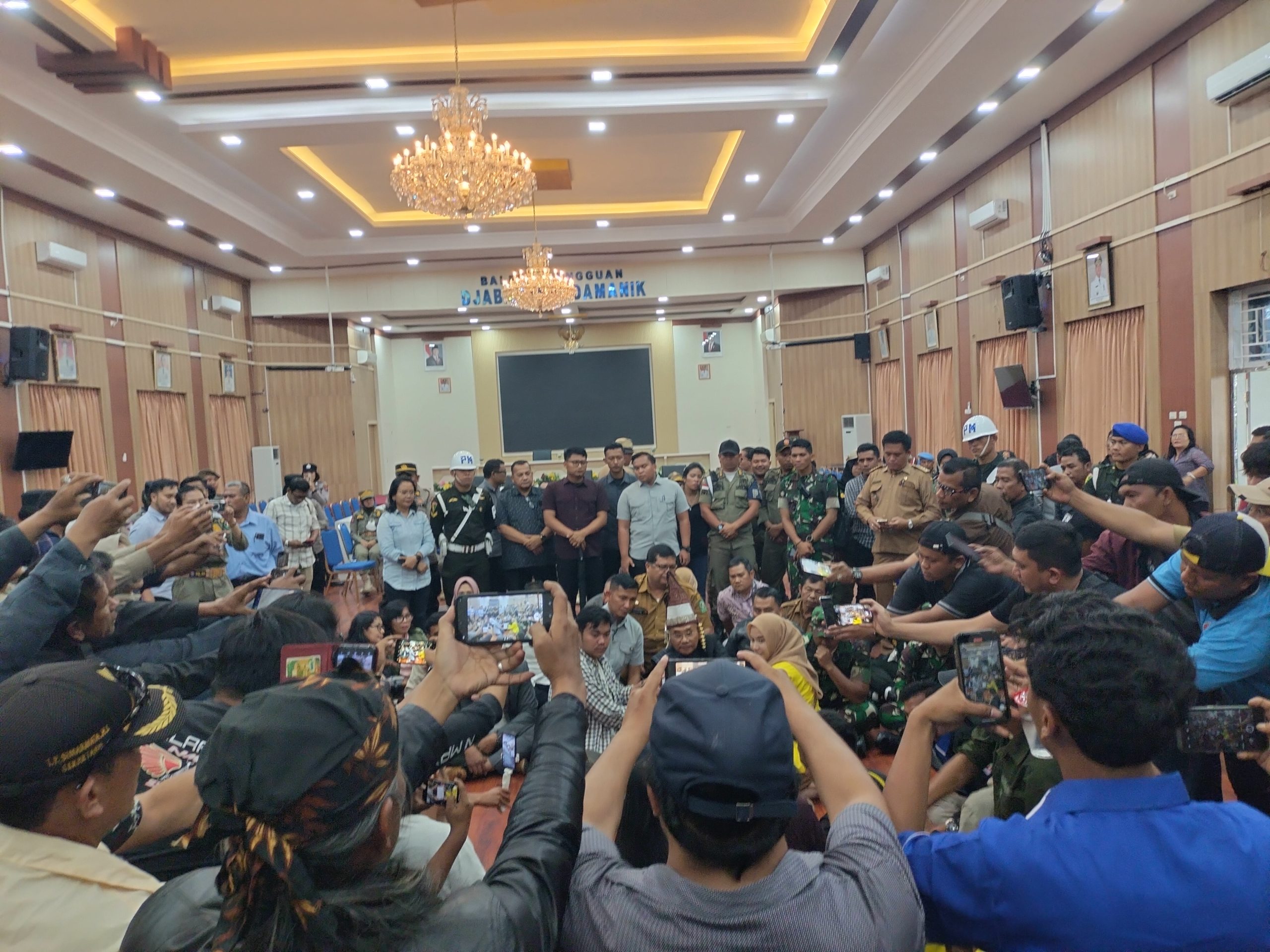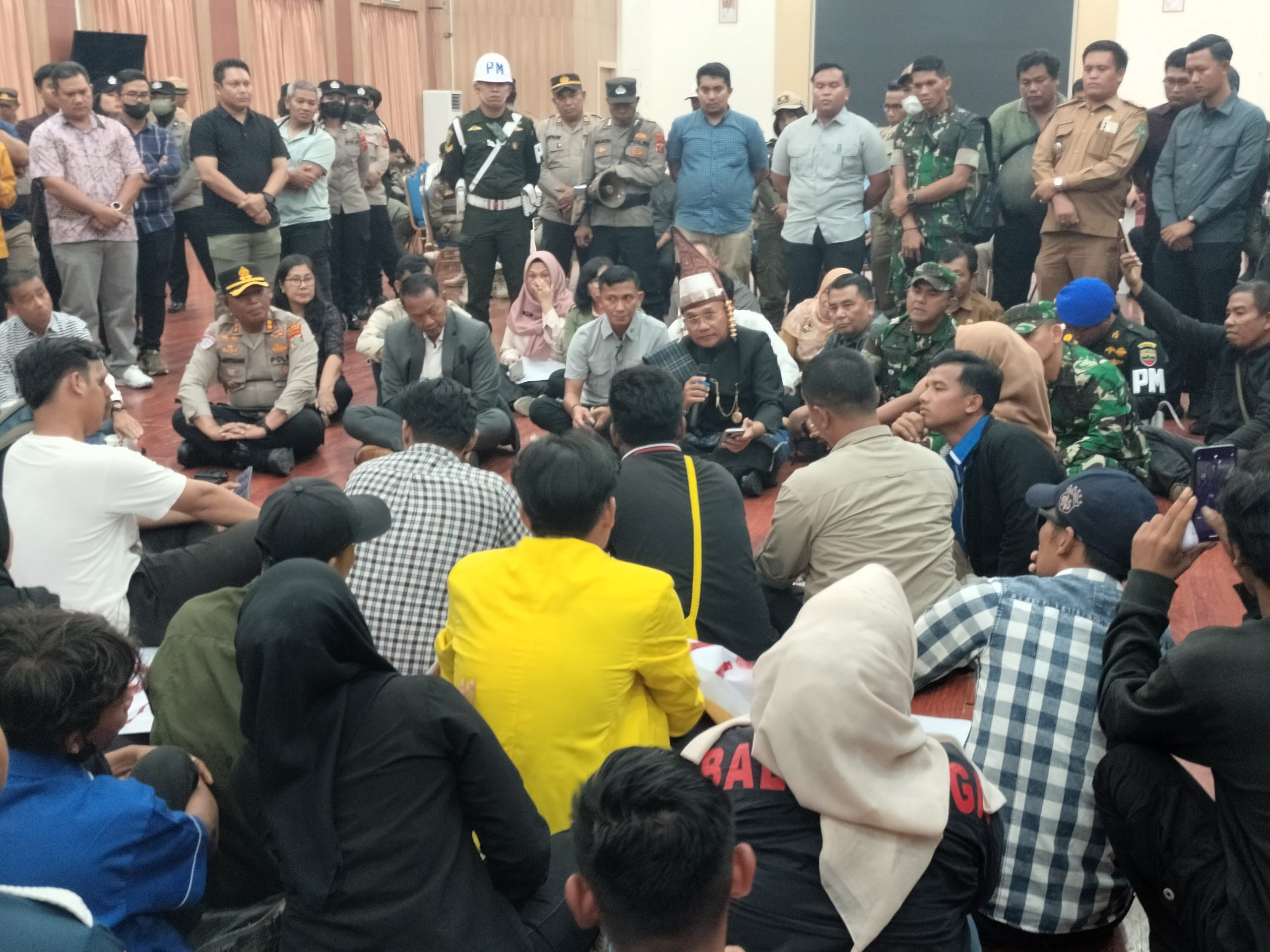 Menanggapi hal tersebut, Bupati Simalungun Anton Saragih mempersilakan mahasiswa masuk ke Ruang Harungguan untuk membicarakan aspirasi mereka.