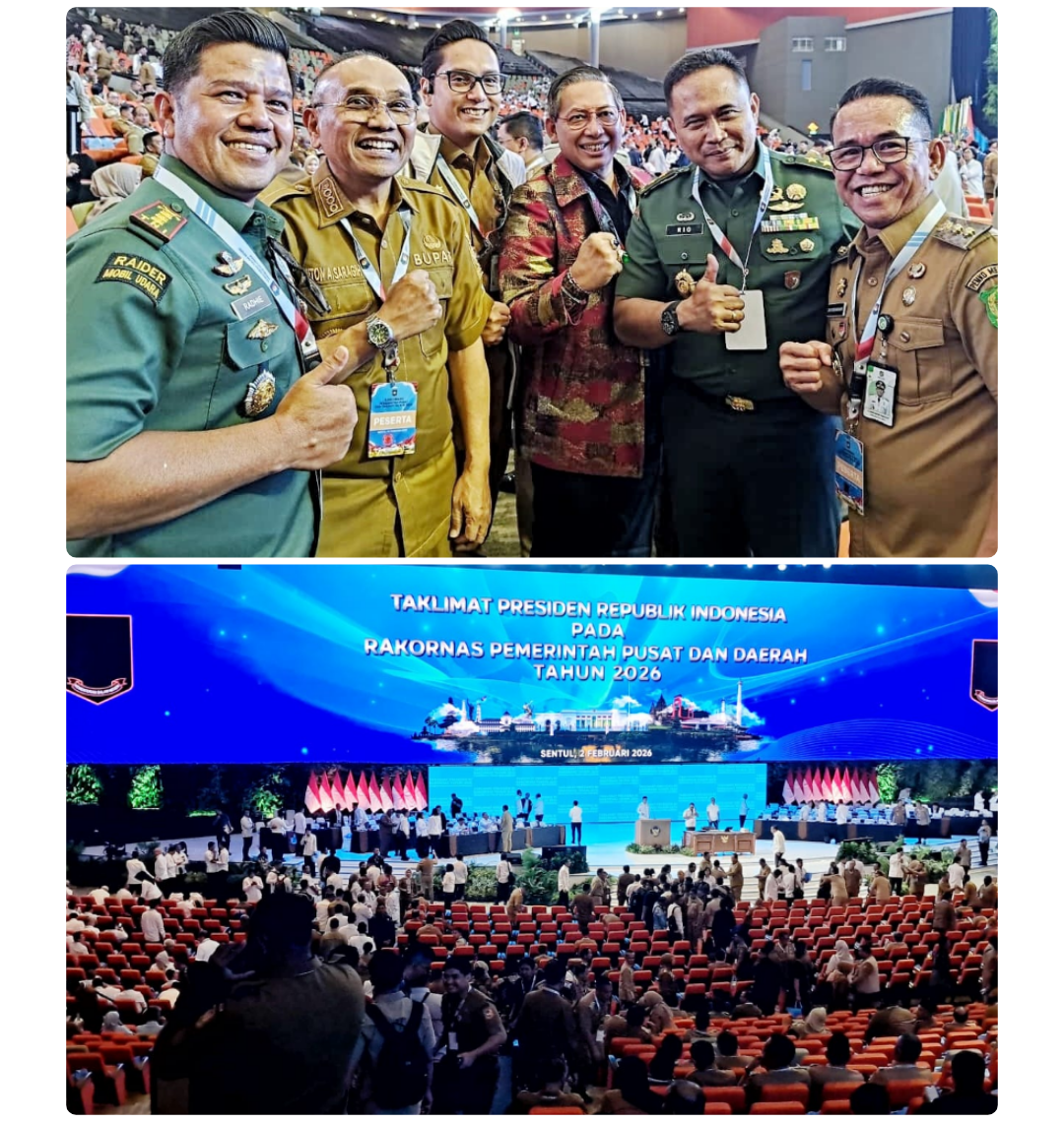 JABAR – Bupati Simalungun Dr. H. Anton Achmad Saragih bersama Wakil Bupati Benny Gusman Sinaga serta jajaran Forum Koordinasi Pimpinan Daerah (Forkopimda) Kabupaten Simalungun menghadiri Rapat Koordinasi Nasional (Rakornas) Pemerintah Pusat dan Daerah Tahun 2026 yang digelar di Sentul International Convention Center (SICC), Senin (2/2/2026).