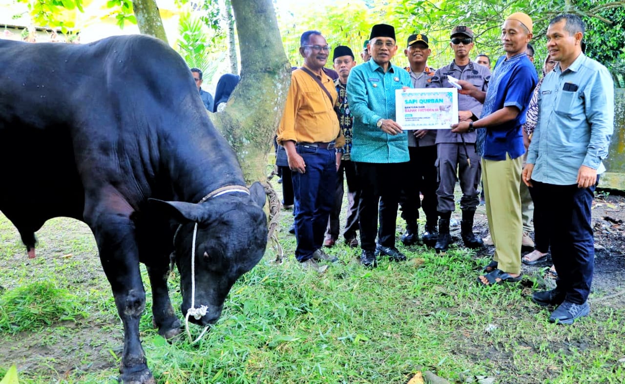 SIMALUNGUN – Bupati Simalungun, Anton Achmad Saragih menyerahkan hewan qurban berupa 1 ekor sapi seberat 800 kg dari Presiden RI kepada pengurus Badan Kemakmuran Masjid (BKM) Al-Huda Nagori Bandar Selamat, Kecamatan Dolok Batu Nanggar, Simalungun, Sumut, Kamis, (5/6/2025).