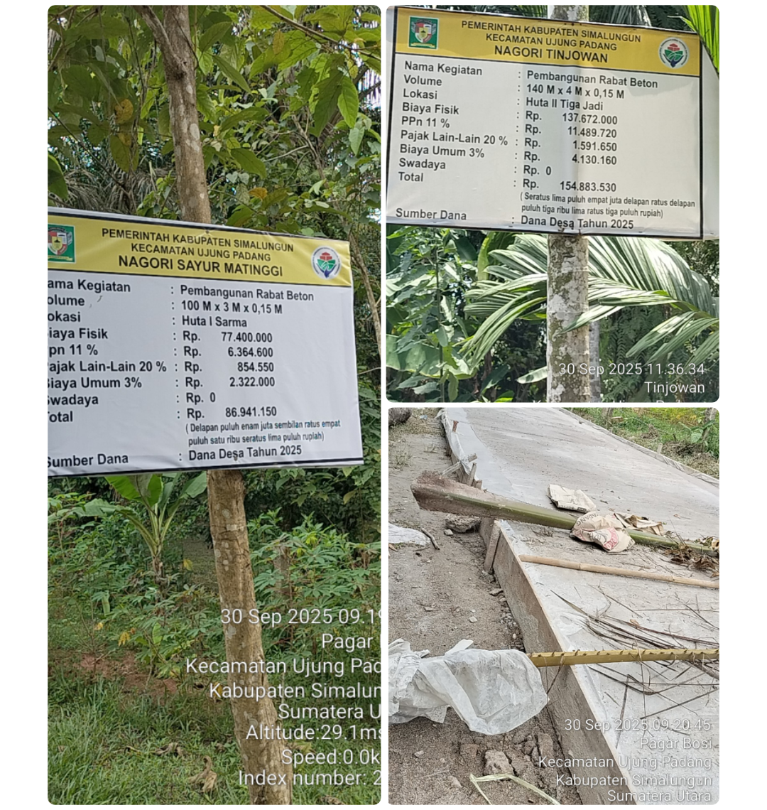 Berdasarkan pantauan di lapangan, hal itu terlihat jelas pada plank proyek di Nagori Sayur Matinggi dan Nagori Tinjoan, Kecamatan Ujung Padang.