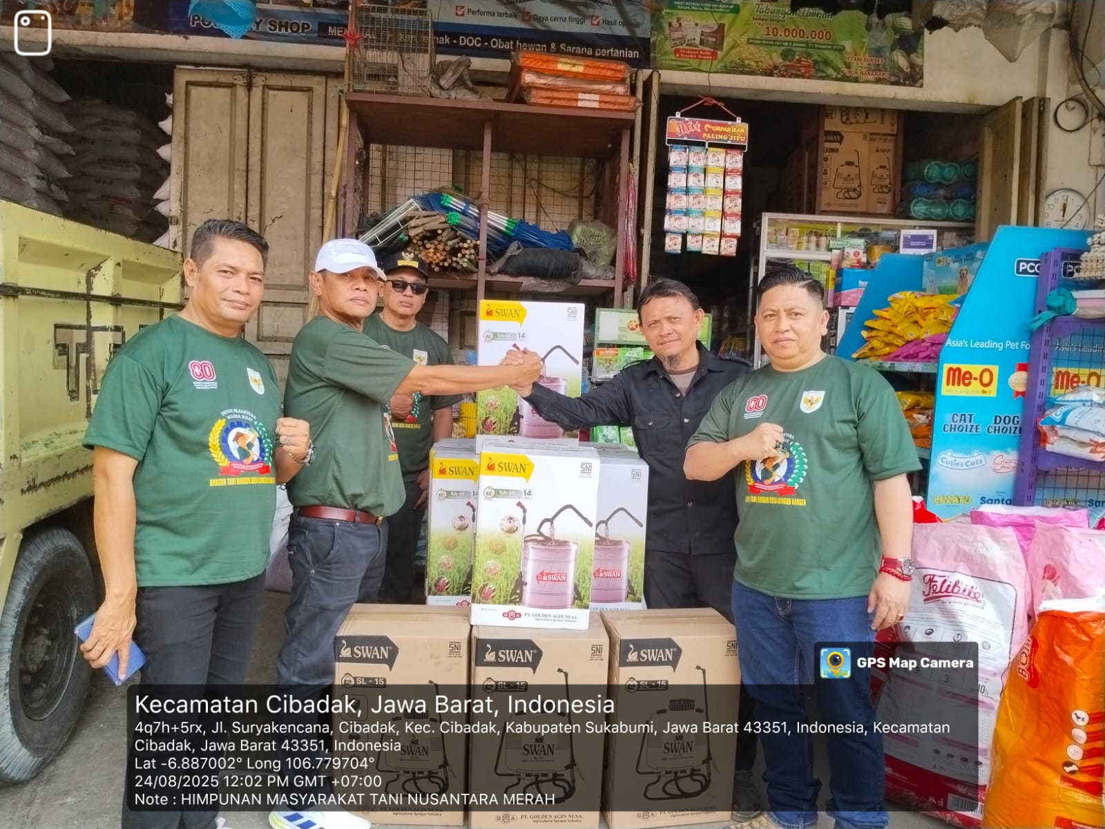 Penyerahan alat semprot kepada kelompok tani yang diserahkan oleh Ketua Satgas Nasional HMTN-MP, Budi Ilham didampingi Ketum Asril Naskah, Minggu (24/08/2025).