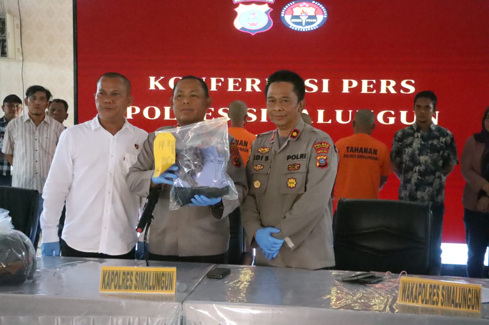 Kapolres Simalungun AKBP Marganda Aritonang, S.H., S.I.K., M.M., memimpin konferensi pers pengungkapan kasus tersebut pada Rabu (7/5/2025) pukul 14.30 WIB di Aula Andar Siahaan, Mapolres Simalungun.