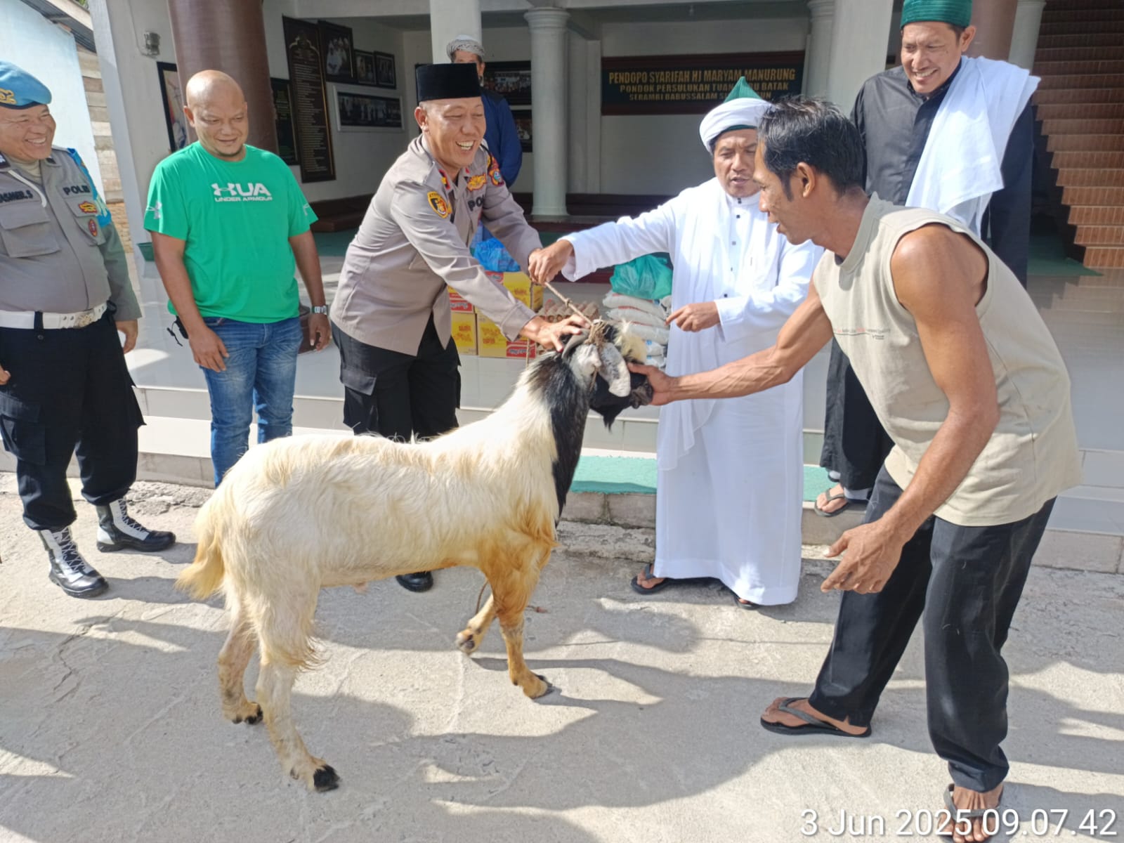 SIMALUNGUN – Dalam rangka menyambut Hari Raya Idul Adha 1446 H, Polsek Tanah Jawa Polres Simalungun menunjukkan kepedulian sosial dengan memberikan bantuan kurban dan sembako kepada Pondok Pesantren Tuan Guru Batak (TGB) Serambi Babussalam Simalungun. Kegiatan yang dipimpin langsung oleh Kapolsek Tanah Jawa Kompol Asmon Bufitra S.H., M.H. ini merupakan wujud nyata dari program Polri untuk Masyarakat dalam mempererat hubungan dengan lembaga keagamaan di wilayah hukumnya.