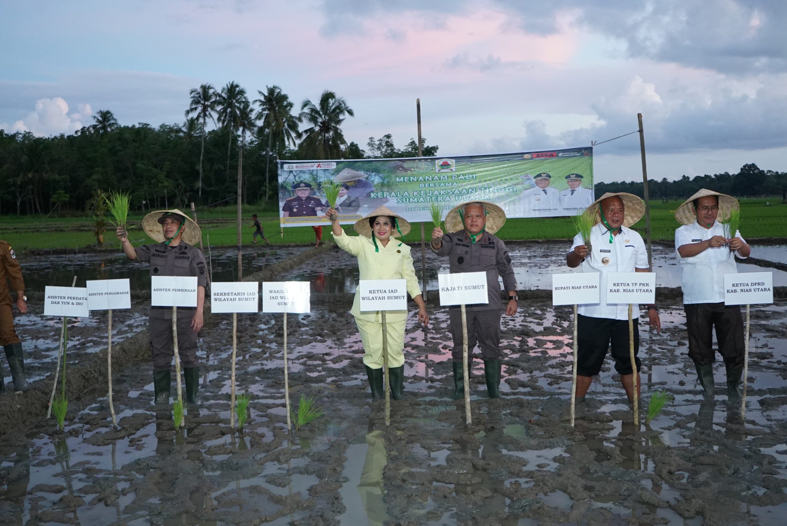 Tak berhenti di situ, Kajati bersama rombongan turut melaksanakan penanaman padi secara simbolis di Kabupaten Nias Utara, sebagai dukungan terhadap program ketahanan pangan nasional yang menjadi prioritas pemerintah pusat.