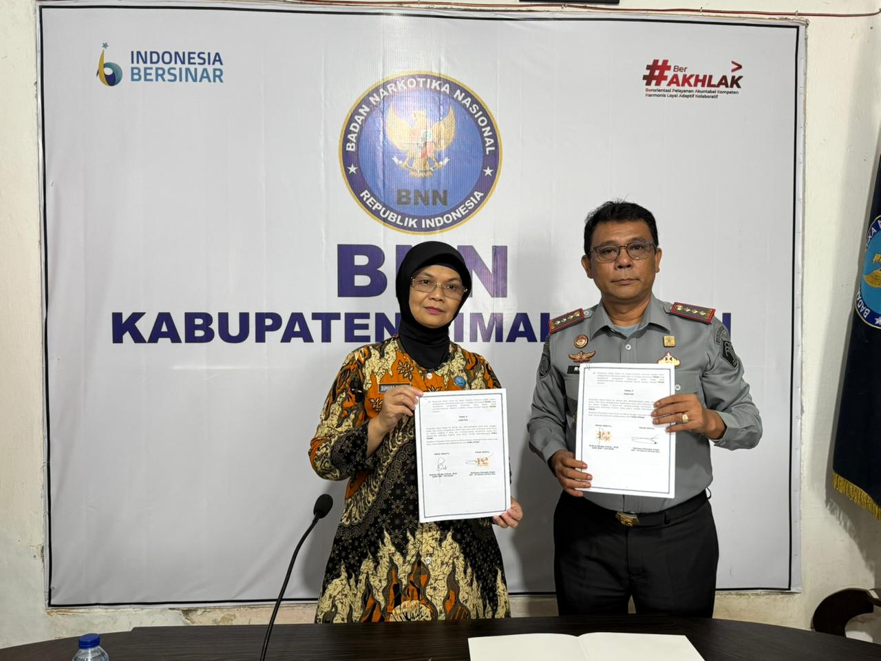 Penandatanganan yang dilakukan Kalapas dan Kepala BNNK Simalungun tentang pencegahan dan pemberantasan penyalahgunaan dan peredaran gelap Narkotika dan prekursor narkotika di UPT Lembaga Pemasyarakatan Narkotika Kelas IIA Pematangsiantar.