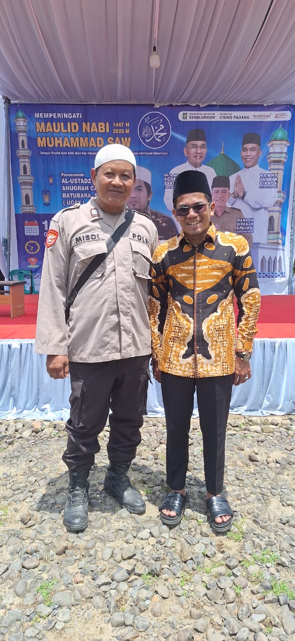 SIMALUNGUN – Kepala Pos Polisi (Kapolpos) Ujung Padang, Aiptu Misdi, memimpin langsung pengamanan kegiatan peringatan Maulid Nabi Muhammad SAW 1447 H/2025 M di halaman Kantor Camat Ujung Padang, Kabupaten Simalungun, pada Rabu (15/10/2025). Kegiatan yang dihadiri sekitar 350 jamaah tersebut berlangsung khidmat, aman, dan tertib.