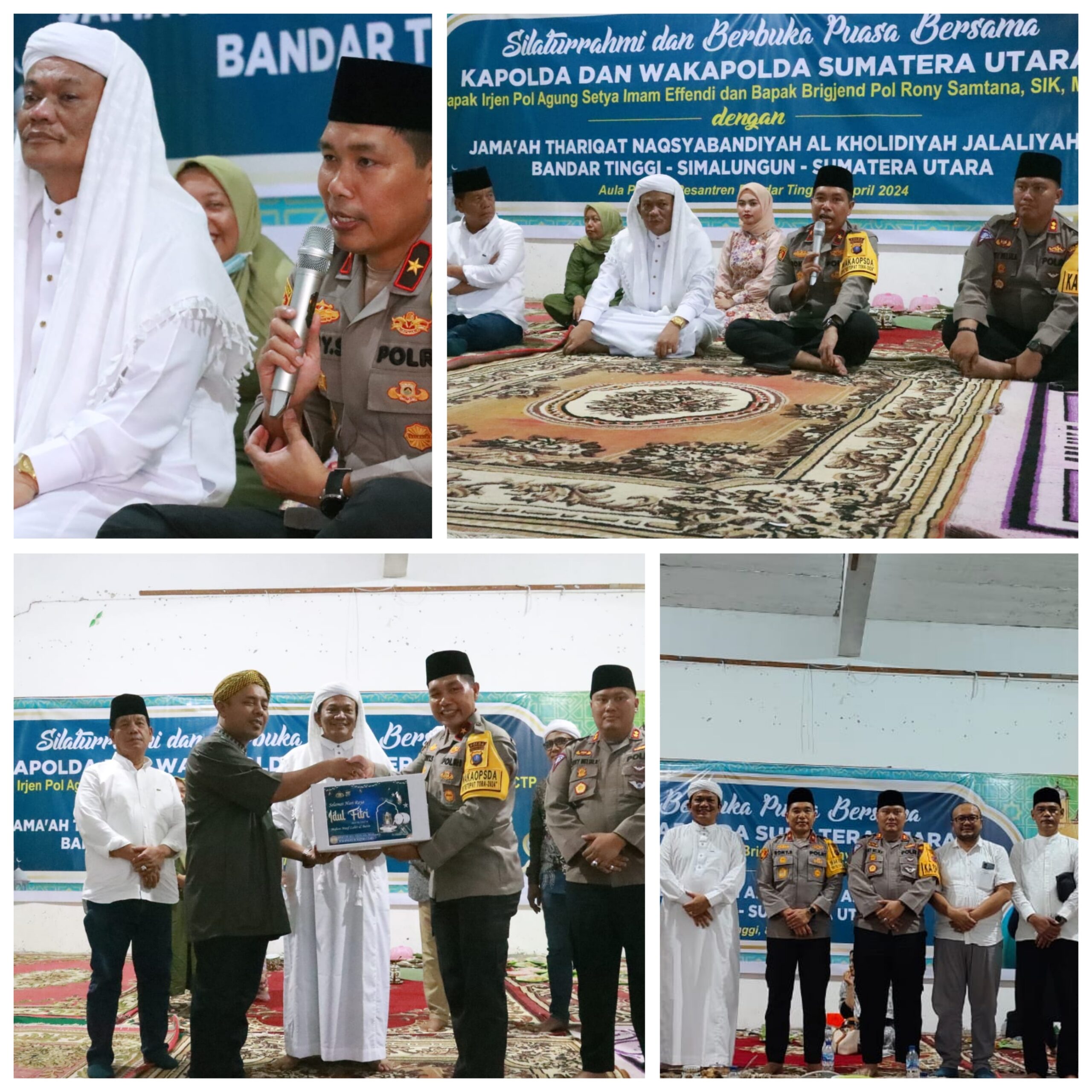 POROSTIMES, SIMALUNGUN – Dalam rangka meningkatkan tali silaturahmi dan kerjasama antara kepolisian dengan tokoh agama, Wakapolda Sumatera Utara, Brigjen Pol Rony Samtana Tarigan, S.I.K., M.T.C.P., bersama rombongan melaksanakan Kunjungan Kerja Safari Ramadhan ke Pondok Pesantren Yayasan Dr. Syekh Salman Daim, Thariqat Naqsyabandiyah Al-Kholidiyah Jalaliyah, Nagori Bandar Rejo, Kecamatan Bandar Masilam, Kabupaten Simalungun, pada Senin, 08 April 2024.