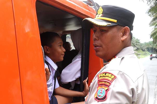 “Adik-adik jangan mau naik di atas cap mobil, itu sangat berbahaya. Tunggu saja angkutan berikutnya. Kalian adalah masa depan bangsa, jangan sampai cita-cita hilang hanya karena kecelakaan di jalan,” pesan AKBP Marganda Aritonang.