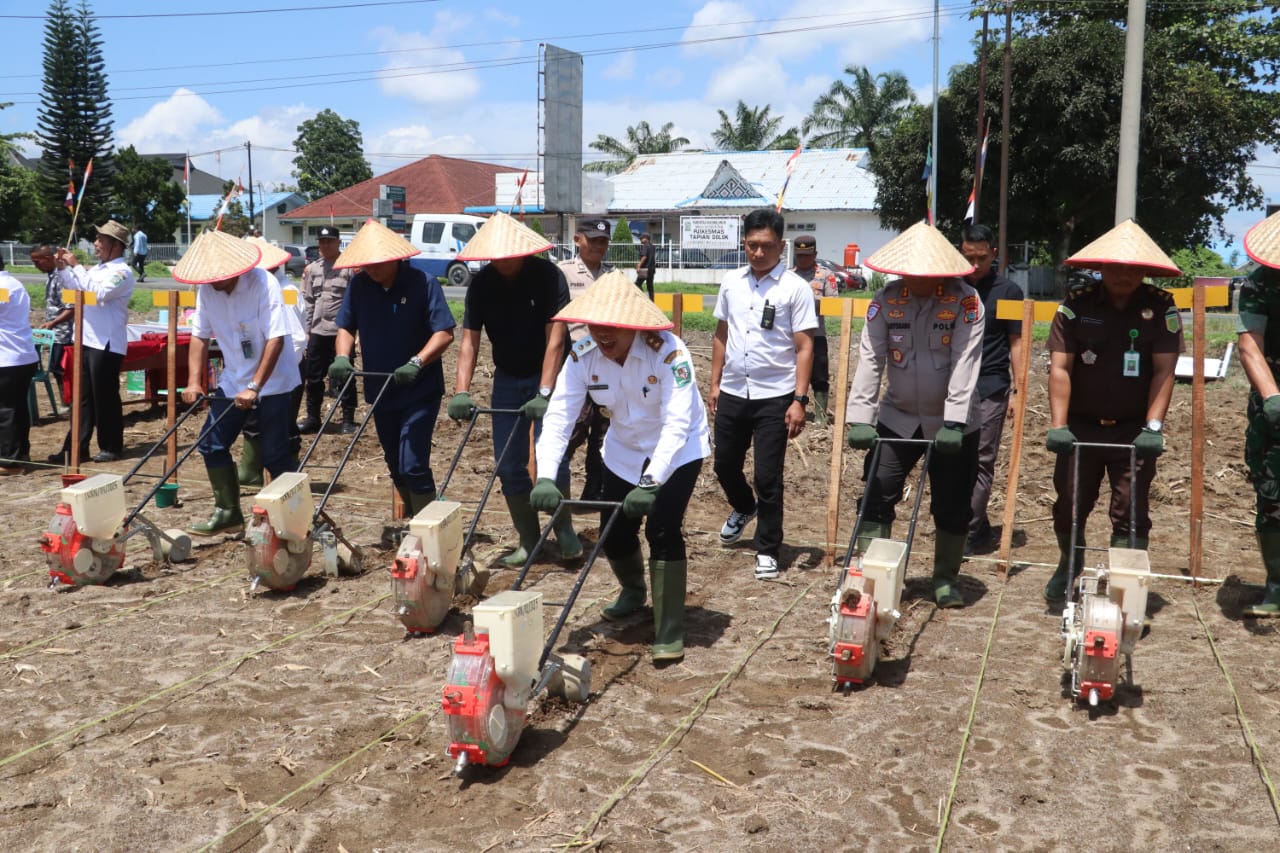 Kapolres Simalungun AKBP Marganda Aritonang, S.H., S.I.K., M.M., bersama jajaran Forum Koordinasi Pimpinan Daerah (Forkopimda) Kabupaten Simalungun menghadiri kegiatan tersebut yang digelar di areal lahan tidur milik Pemkab Simalungun, Jalan Medan KM 11,5, Huta I, Desa Purbasari, Kecamatan Tapian Dolok.