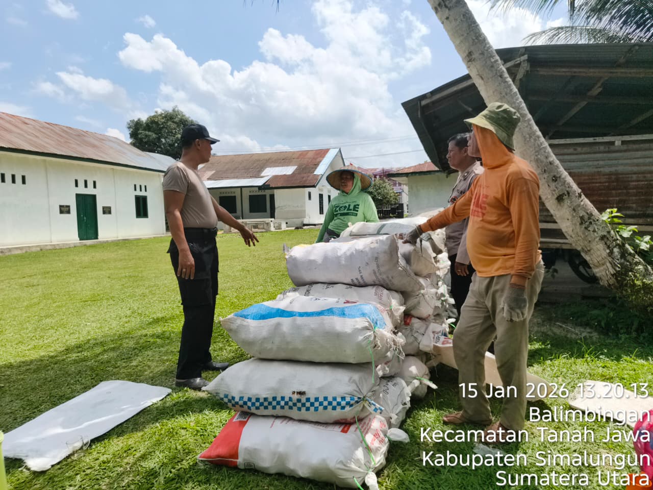 SIMALUNGUN – Kapolsek Tanah Jawa, Kompol Asmon Bufitra, turun langsung memanen jagung di lahan milik Polsek Tanah Jawa seluas enam rante yang berada di Nagori Balimbingan, Kecamatan Tanah Jawa, Kamis (15/1/2026). Dari lahan tersebut, berhasil dipanen sebanyak 35 goni jagung sebagai bentuk kontribusi nyata Polri dalam mendukung ketahanan pangan.