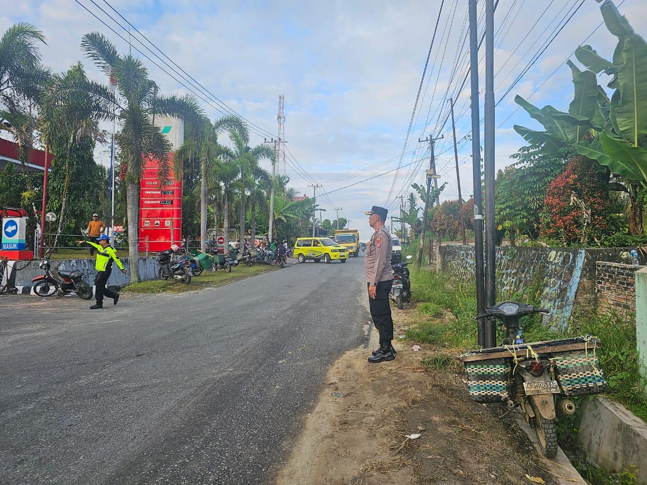 Kapolsek Tanah Jawa Turun Tangan Atur Lalin di SPBU Balimbingan