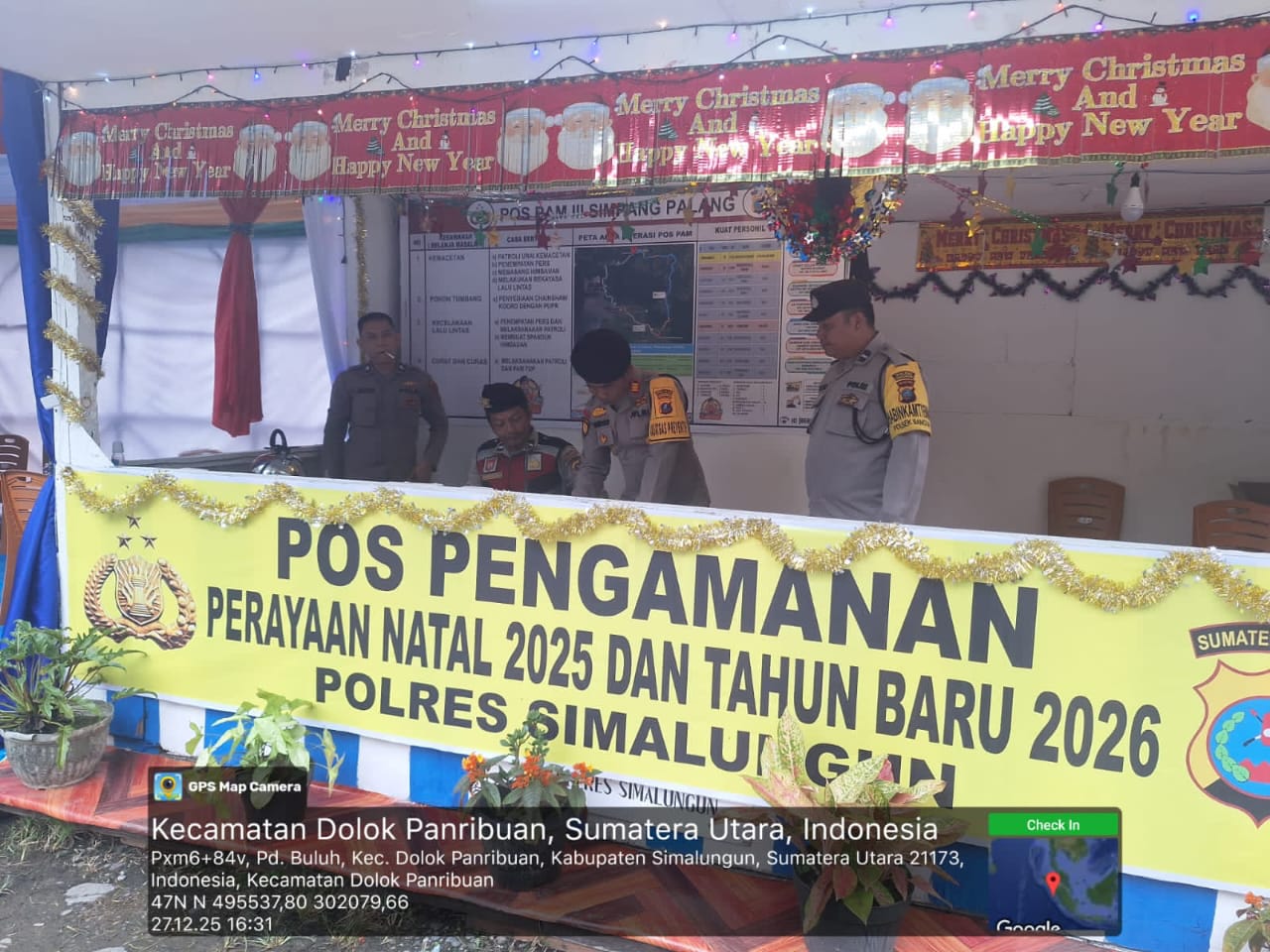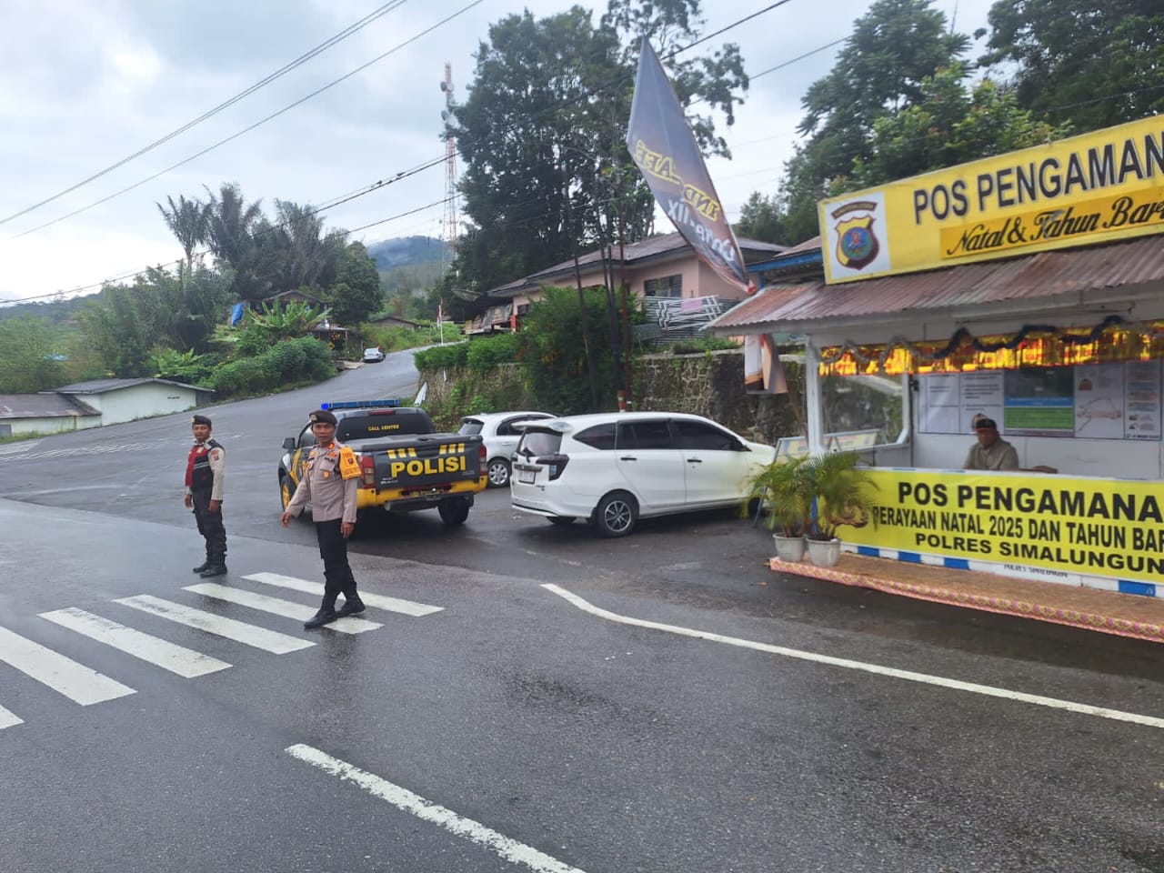 SIMALUNGUN – Kasat Samapta Polres Simalungun AKP Rudi Handoko, SH, MH., melakukan pengecekan langsung ke lima Pos Pengamanan dan Pelayanan Operasi Lilin Toba 2025, Sabtu (27/12/2025). Monitoring dilakukan untuk memastikan situasi kamtibmas dan arus lalu lintas tetap kondusif menjelang Tahun Baru 2026.