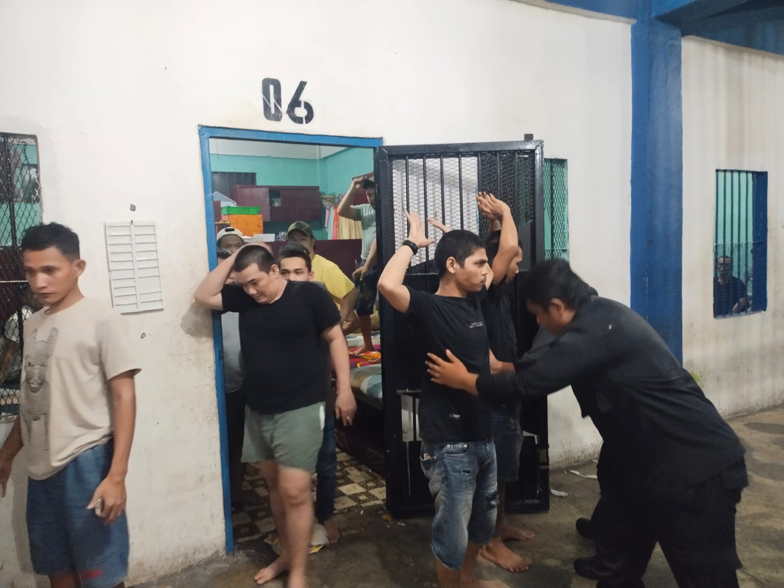 Usai memberikan arahan, selanjutnya petugas mengeluarkan para warga binaan dari dalam kamar dan dilakukan pemeriksaan terhadap barang-barang yang ada di tiap lemari dan kasur.