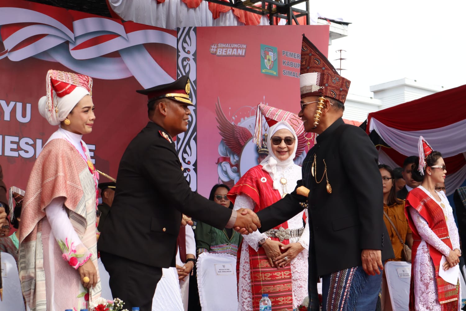 Inspektur upacara adalah Bupati Simalungun, Dr. H. Anton Achmad Saragih, S.E., M.M., didampingi Wakil Bupati Benny Gusman Sinaga. Jajaran Forkopimda turut hadir lengkap, di antaranya Kasdim 0207/SML Mayor Inf Margana, Kajari Simalungun Irfan Hergianto, Ketua PN Simalungun Erika Sari Emsah Ginting, serta para tokoh masyarakat dan agama.