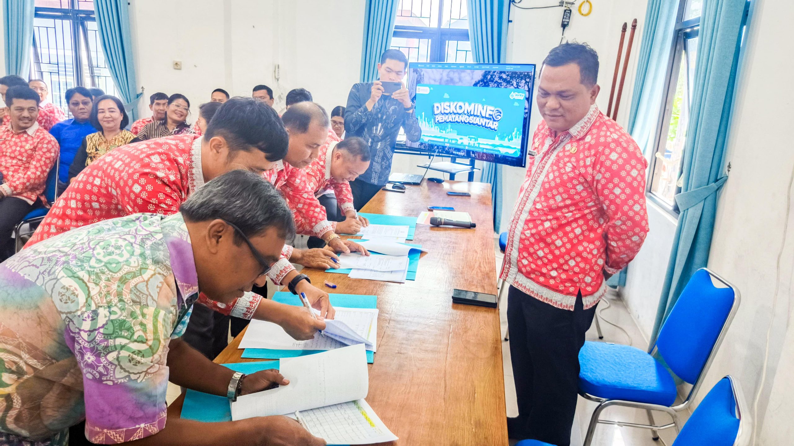 PEMATANGSIANTAR – Aparatur Sipil Negara (ASN) Dinas Komunikasi dan Informatika (Kominfo) Kota Pematangsiantar menandatangani Perjanjian Kinerja sebagai bentuk komitmen meningkatkan kinerja organisasi perangkat daerah (OPD), Kamis (12/02/2026). Kegiatan yang berlangsung di ruang rapat lantai II Kantor Dinas Kominfo, Jalan WR Supratman, itu turut dirangkai dengan pelepasan salah seorang Pegawai Negeri Sipil (PNS), Idrus, yang memasuki masa purnabakti.
