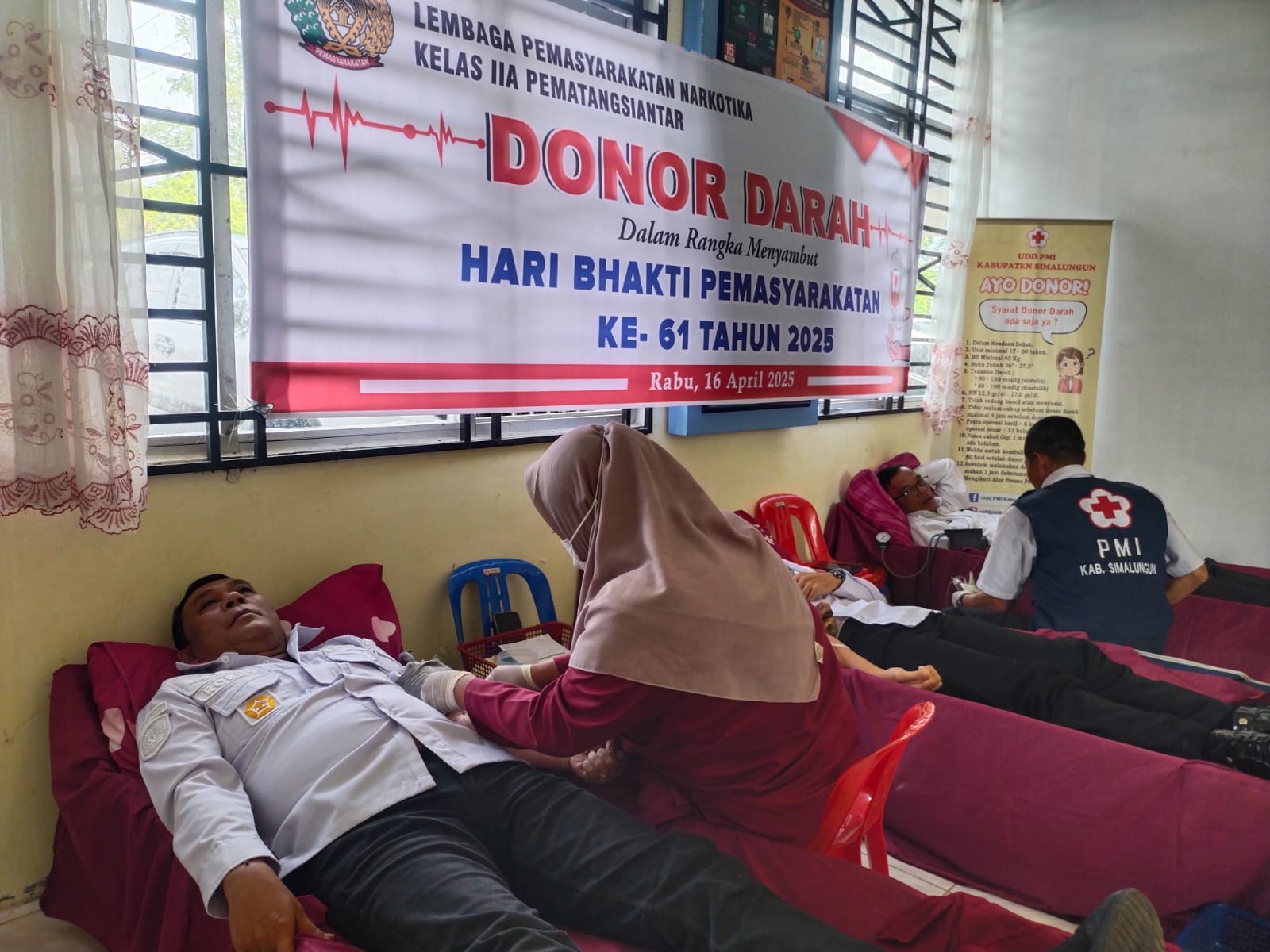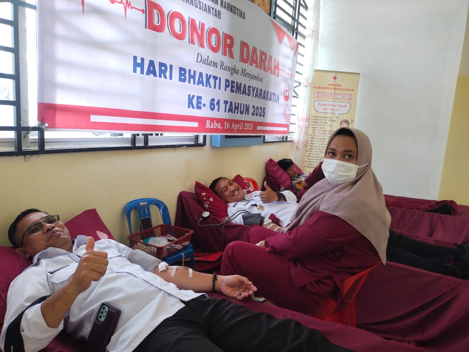 Kalapas Narkotika Kelas IIA Pematangsiantar Robinson Peranginangin disela acara donor darah mengatakan bahwa kegiatan donor darah rutin dilaksanakan pihaknya dalam rangka menyambut Hari Bakti Pemasyarakatan ke-61.