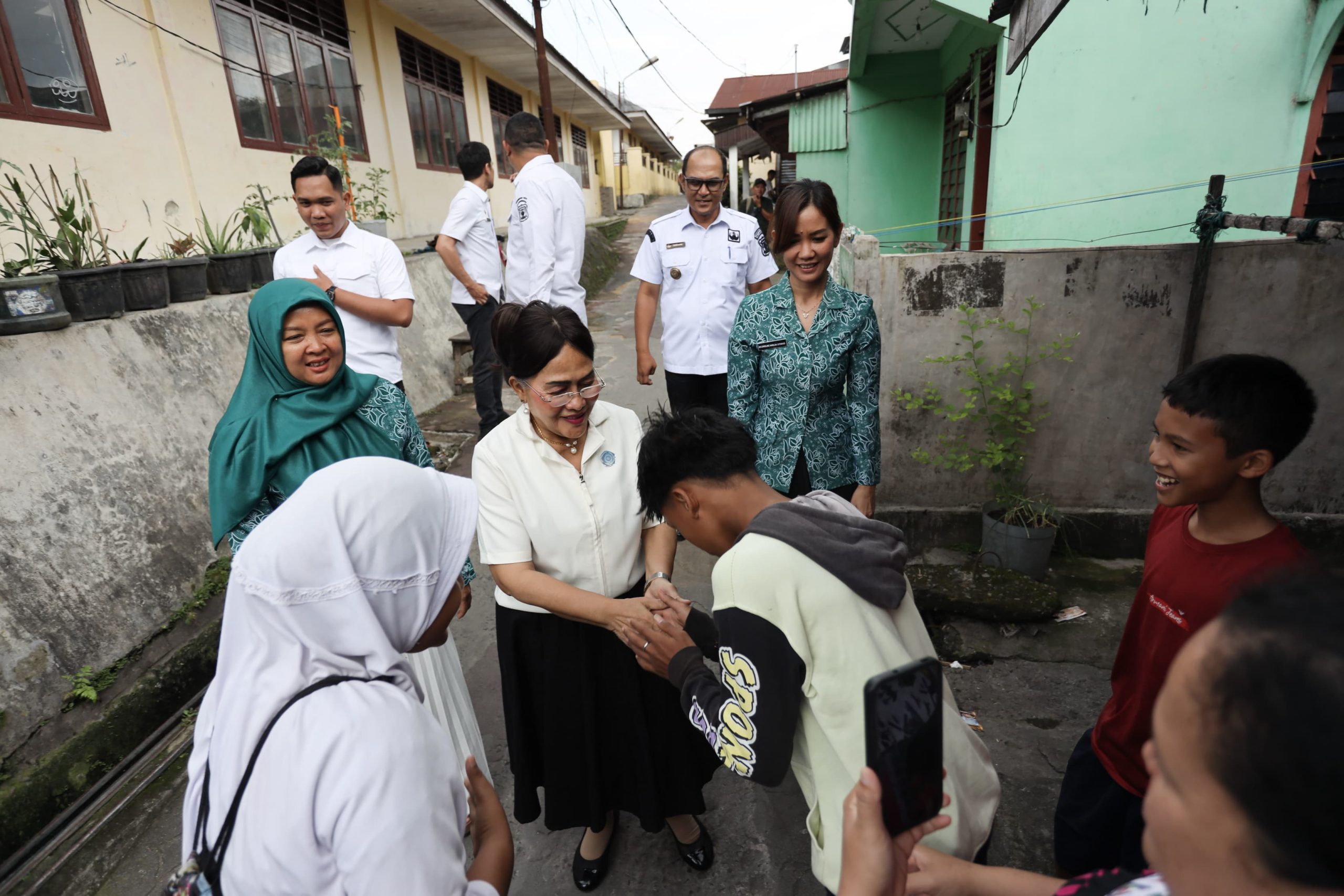 Menariknya, Ny Liswati bersama Camat Siantar Utara Marlon Brando Sitorus, SSTP, M.Si, berjalan kaki dari Jalan Nagur menuju Kantor Lurah Martoba yang berjarak lebih dari 100 meter. Dalam perjalanan, ia sempat menyapa warga sekitar dengan ramah.