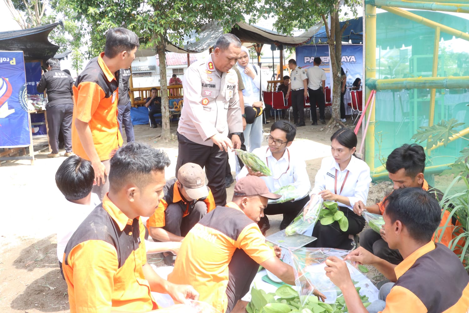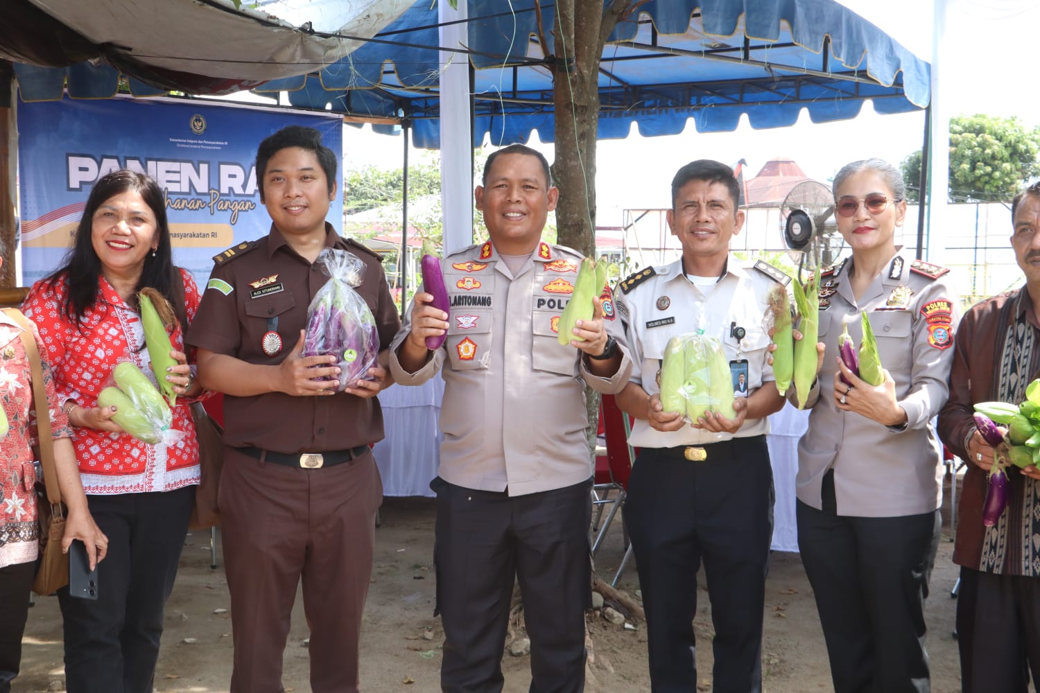 Sekitar pukul 11.30 WIB, panen raya dilakukan secara simbolis. Kapolres bersama para tamu undangan turun langsung ke lahan pertanian dan memanen hasil bersama warga binaan. Suasana berlangsung akrab dan penuh kehangatan.