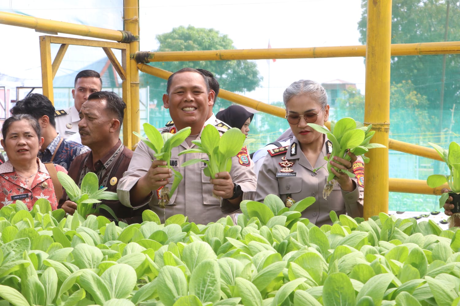 Kegiatan tersebut turut dihadiri Kapolres Pematang Siantar AKBP Sah Udur TM Sitinjak, perwakilan Dandim 0207/Simalungun, Danyonif 122 Tombak Sakti, Ketua Pengadilan Negeri, Kepala Kejaksaan, BNN, Dinas Pertanian, Dinas Koperasi dan UMKM, Bulog, serta perwakilan Irian Supermarket sebagai mitra pemasaran hasil panen.