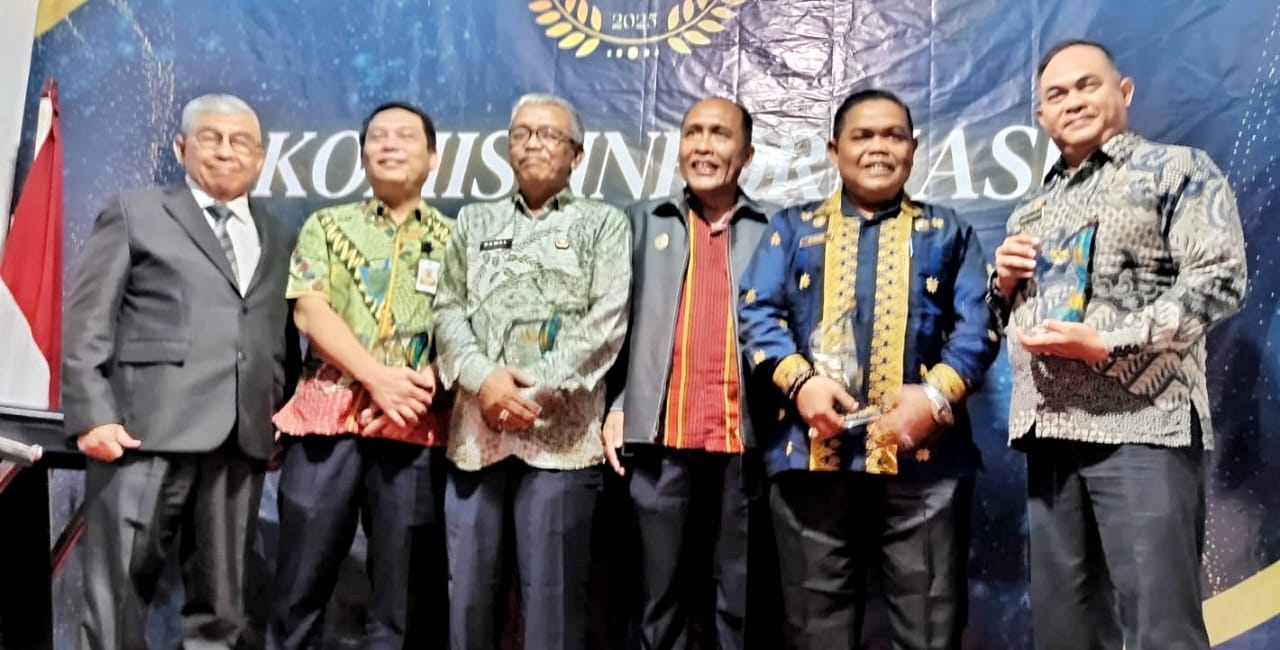 Bupati Simalungun diwakili Kepala Dinas Komunikasi dan Informatika (Kominfo) Kabupaten Simalungun, Andri Rahadian, menerima langsung penghargaan dari Wakil Ketua Komisi Informasi Provinsi Sumatera Utara, Eddy Syahputra.