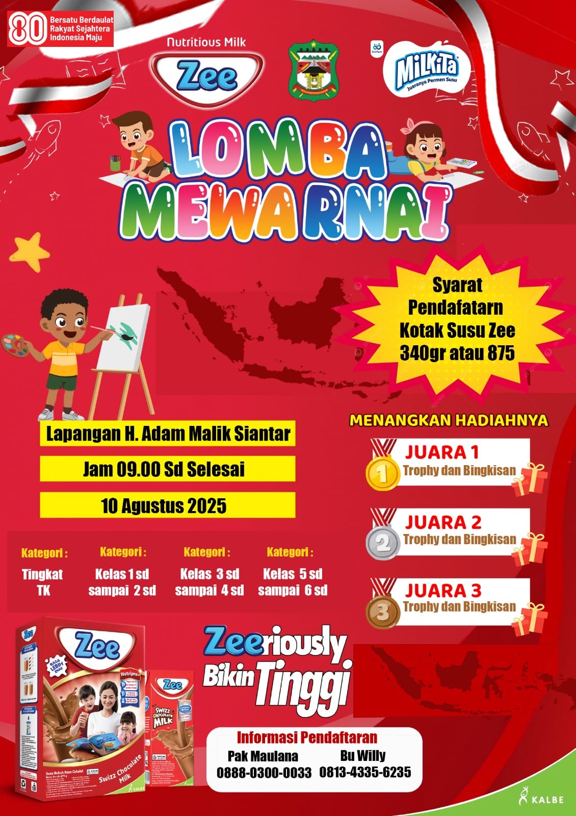 PEMATANGSIANTAR – Dalam rangka menyemarakkan Hari Ulang Tahun (HUT) ke-80 Kemerdekaan Republik Indonesia (RI), Pemerintah Kota (Pemko) Pematangsiantar melalui Badan Kesatuan Bangsa dan Politik (Kesbangpol) akan menggelar Lomba Mewarnai untuk anak-anak. Kegiatan ini akan berlangsung di Lapangan H Adam Malik pada Minggu, 10 Agustus 2025, mulai pukul 09.00 WIB.