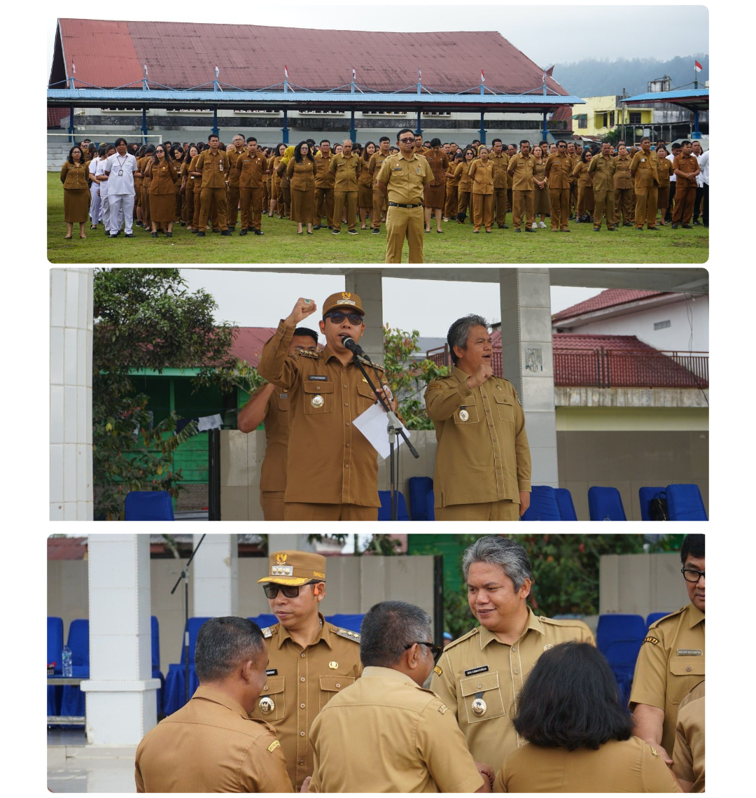 TAPANULI UTARA – Bupati Tapanuli Utara Dr. Jonius Taripar Parsaoran Hutabarat, S. Si., M. Si didampingi Wakil Bupati Dr. Deni Parlindungan Lumbantoruan, ST., M. Eng memimpin apel pagi gabungan bersama ASN se-Kabupaten Tapanuli Utara bertempat di Lapangan Serbaguna Tarutung (Senin, 5 Januari 2026).
