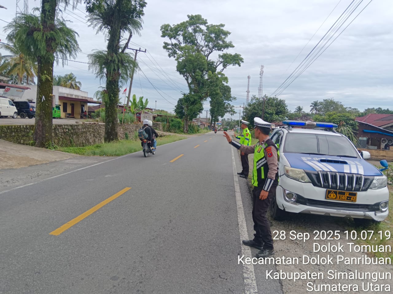 Kegiatan yang berlangsung sejak pukul 10.30 WIB hingga sore hari ini melibatkan tujuh personel Satlantas. Mereka dipimpin oleh Ipda Ganda M.A. Damanik, SH, selaku perwira pengendali patroli.