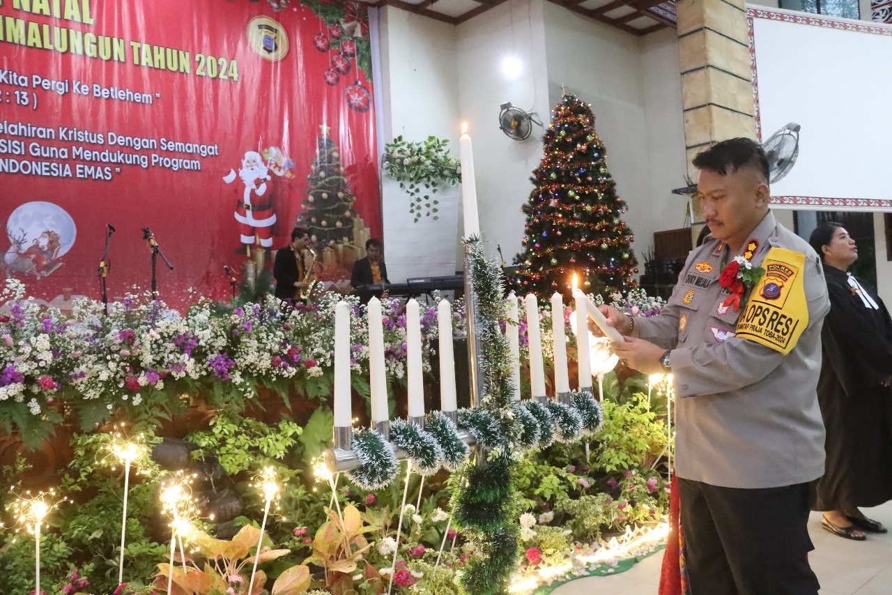 Kasi Humas Polres Simalungun AKP Verry Purba menjelaskan, bahwa acara yang dimulai pukul 16.00 WIB ini mengangkat sub tema “Menyambut sukacita kelahiran Kristus dengan semangat melayani melalui peran Polri Presisi guna mendukung program pemerintah menuju Indonesia Emas.” Dalam perayaan tersebut, Pdt. Erni Julianti Purba, STh. bertindak sebagai pengkhotbah.