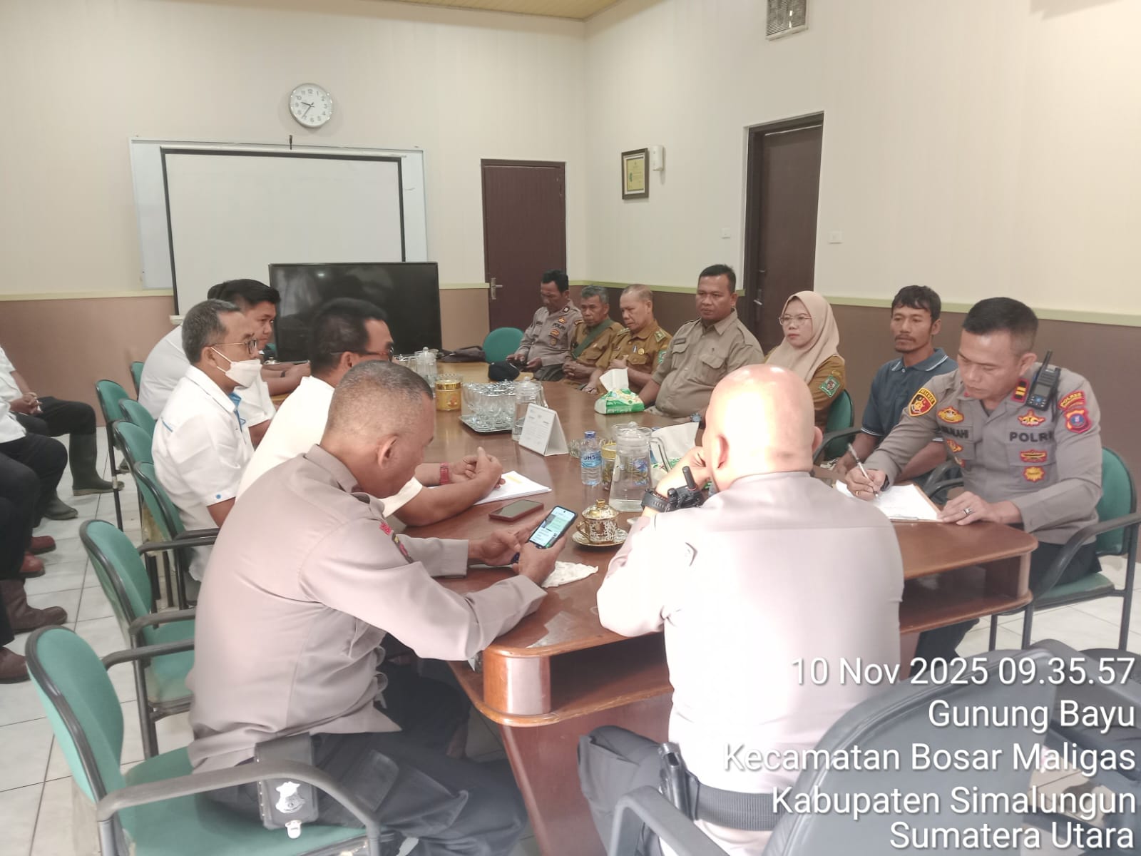 Kapolsek Bosar Maligas IPTU Sonni G. Silalahi, SH, bersama anggotanya turut hadir dalam rapat tersebut. Kegiatan juga diikuti oleh Kapolsek Perdagangan AKP Soefi, Camat Bosar Maligas Rosmardiah, pihak manajemen PTPN IV, para pangulu, serta kelompok tani setempat.