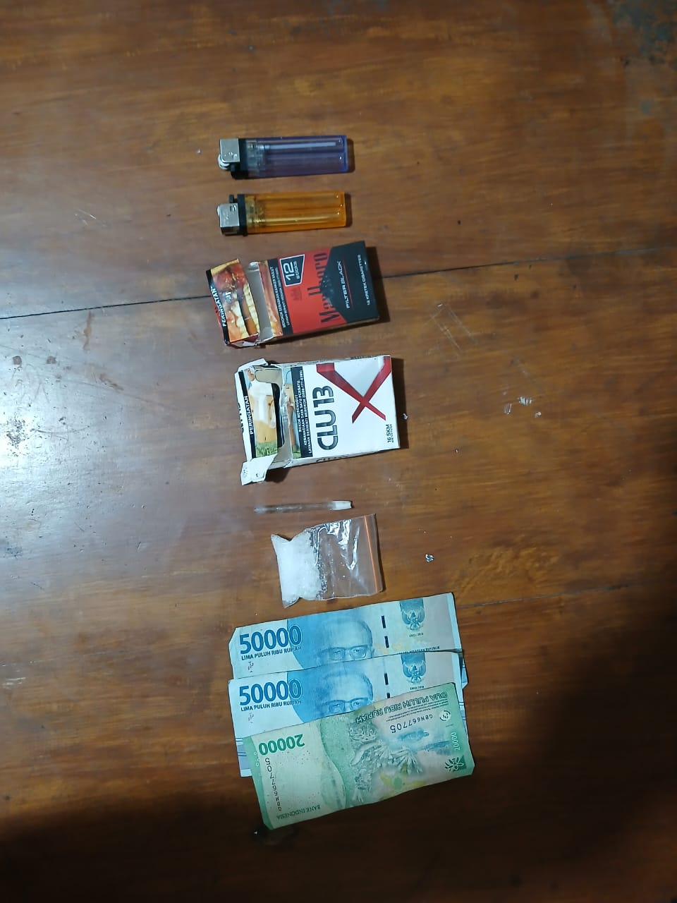 Dari tangan pelaku, polisi mengamankan barang bukti berupa satu kotak rokok Club X berisi satu paket plastik klip sedang berisi sabu seberat bruto 5,02 gram, satu kotak rokok Marlboro Black berisi kaca pirex, dua buah mancis, serta uang tunai sebesar Rp120.000.