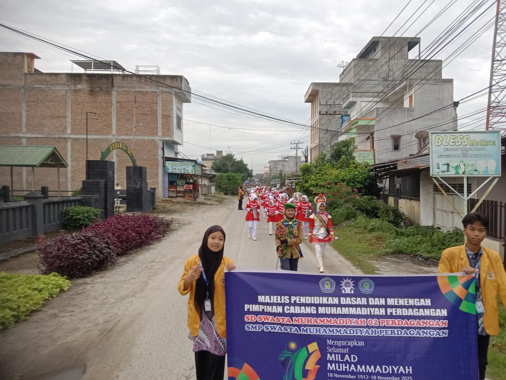 Peserta pawai terdiri atas Marching Band Yayasan Muhammadiyah Perdagangan, siswa-siswi SD Muhammadiyah, serta siswa-siswi SMP Muhammadiyah. Para peserta tampak antusias mengikuti rangkaian kegiatan sejak keberangkatan hingga kembali ke titik akhir.
