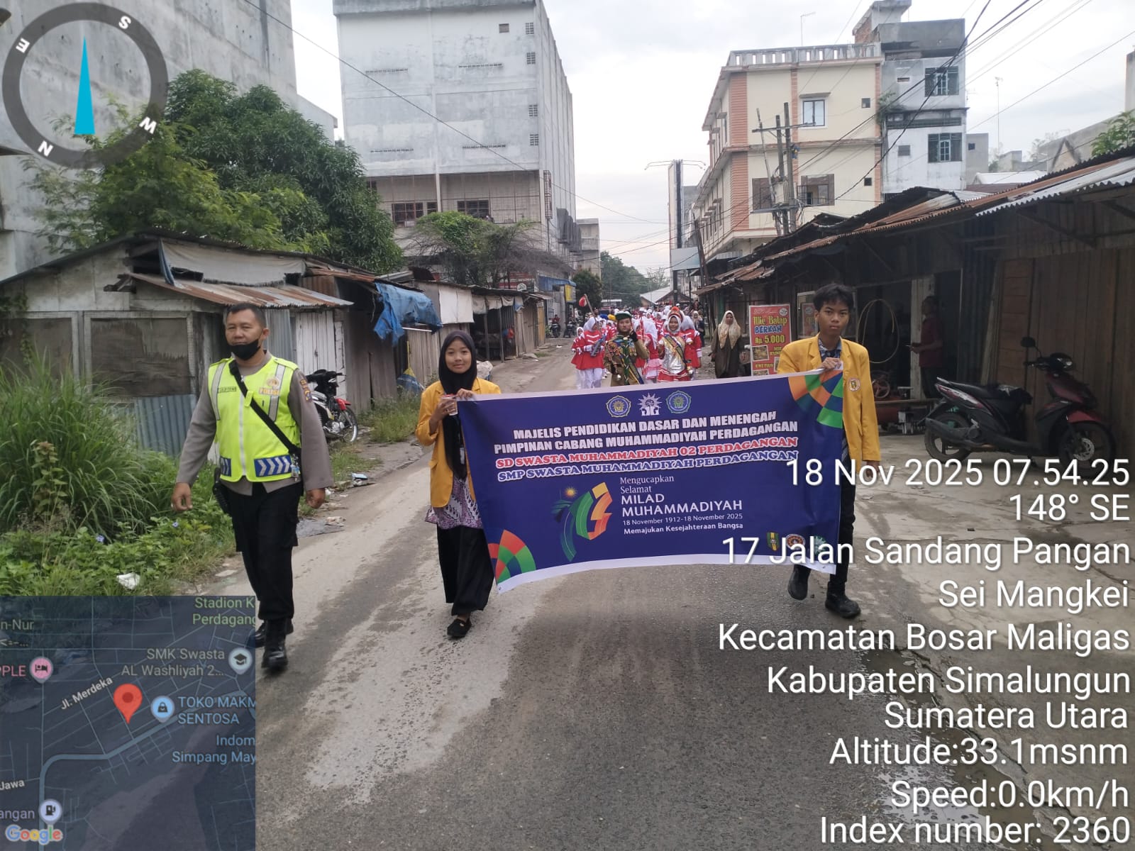 Kapolsek Perdagangan AKP Ibrahim Sopi, SH, MH memimpin langsung pengamanan pawai yang diikuti ratusan siswa dari SD dan SMP Muhammadiyah Perdagangan. Pawai dimulai pukul 06.30 WIB dari halaman Yayasan Muhammadiyah Perdagangan di Kelurahan Perdagangan I, Kecamatan Bandar.