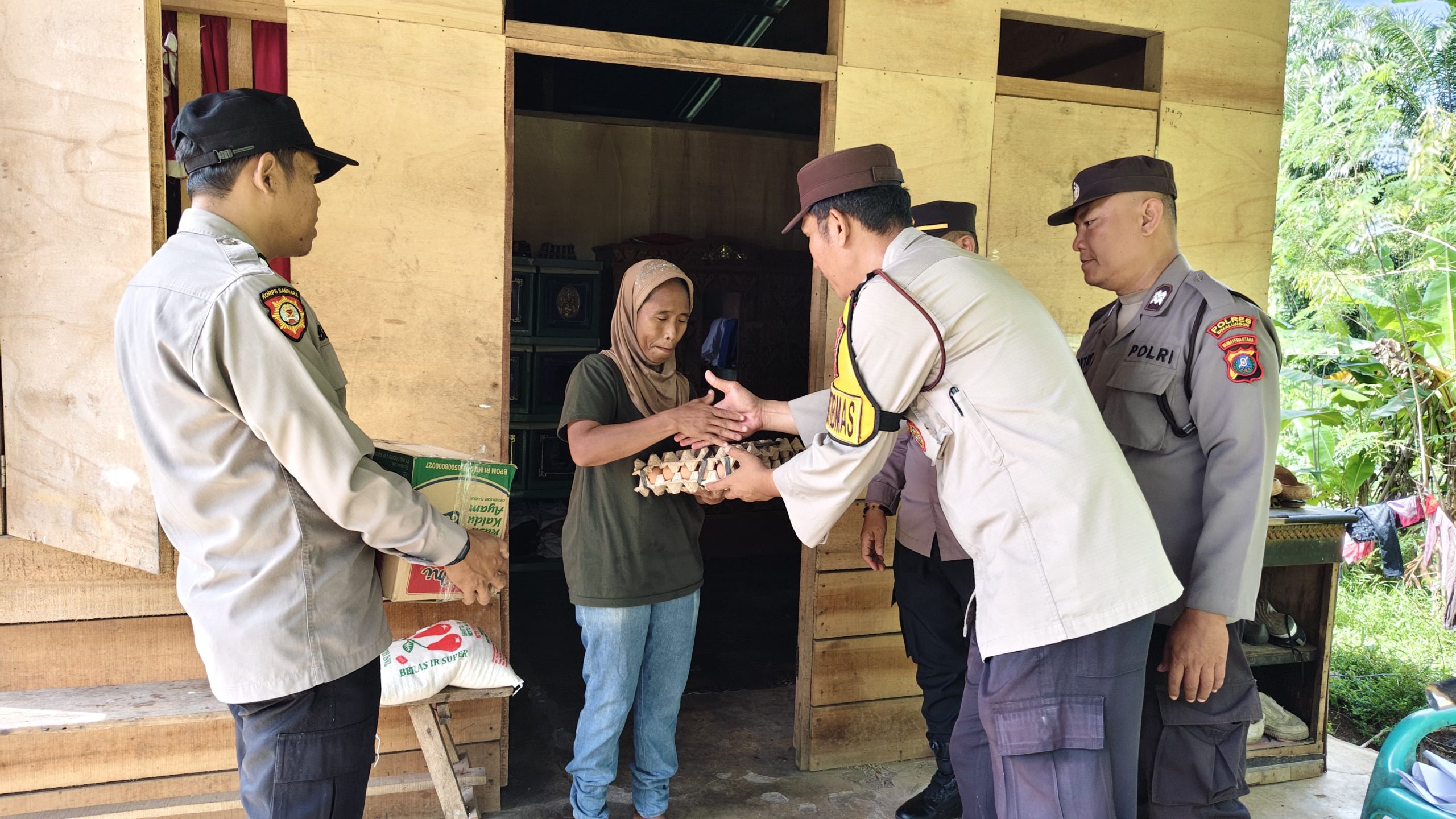 Sebagai bagian dari program Jumat Berkah, Kapolsek Serbelawan bersama jajaran juga membagikan paket sembako kepada warga kurang mampu di Kelurahan Aman Sari sebagai bentuk kepedulian sosial Polri.