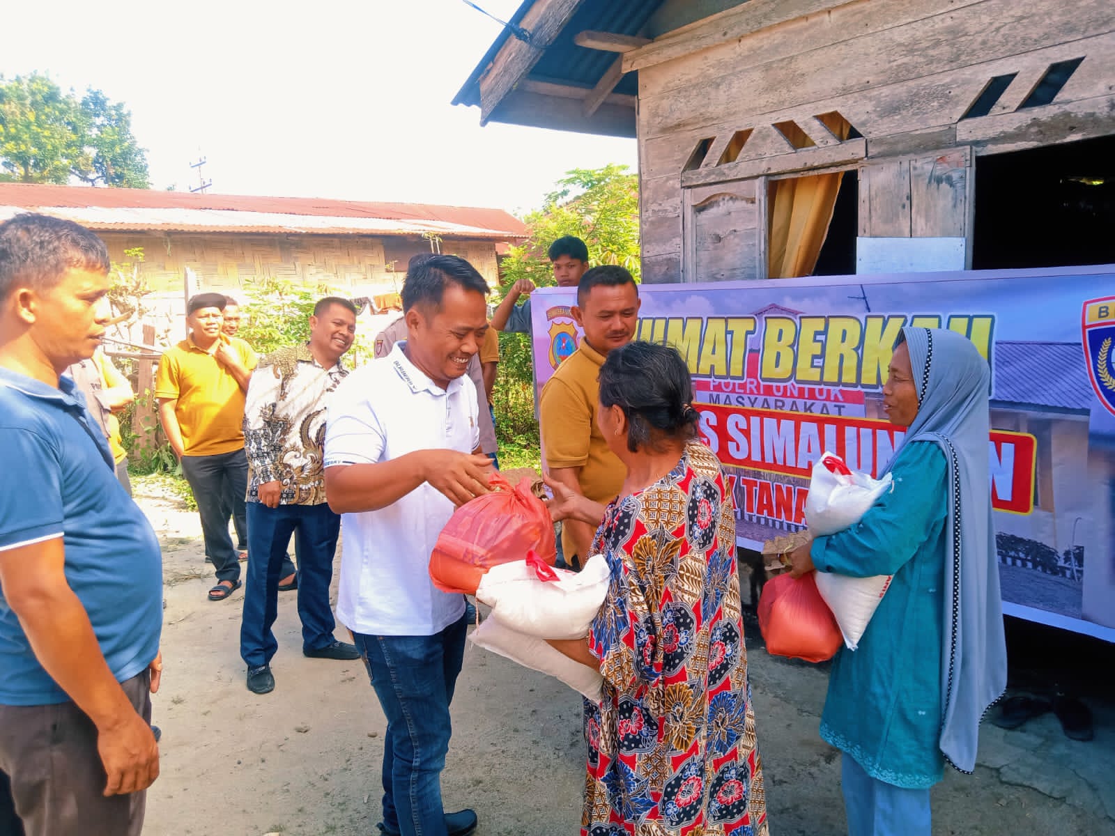 Dalam kegiatan tersebut, personel Polsek Tanah Jawa menyerahkan paket sembako kepada dua warga yang membutuhkan, yakni Ibu Siti Aminah dan Ibu Spianti. Paket bantuan berisi beras 5 kilogram, lima bungkus mi instan, satu papan telur, satu kilogram minyak goreng, satu kilogram gula, serta satu kotak teh celup.