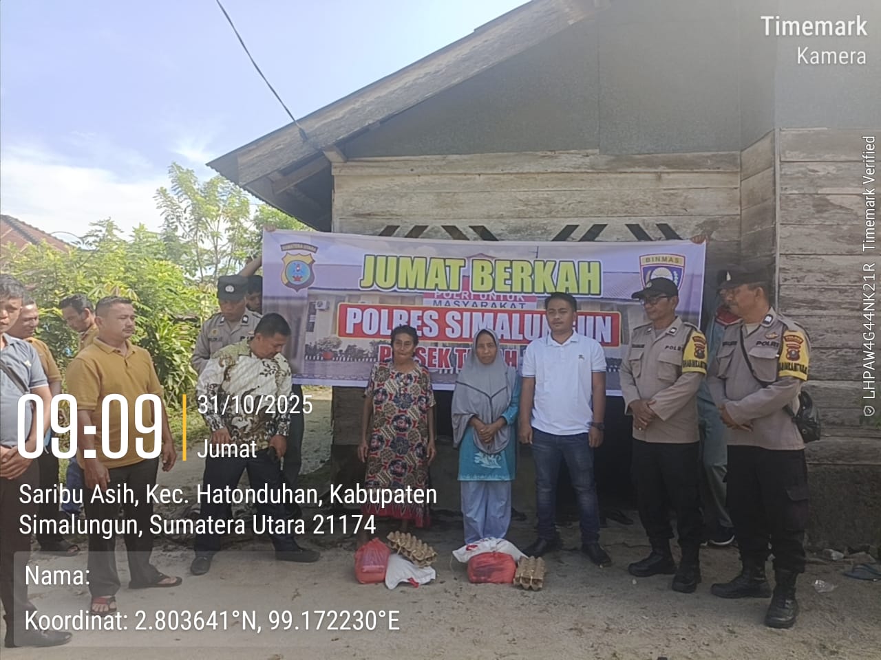 SIMALUNGUN – Kepedulian terhadap masyarakat kembali ditunjukkan jajaran Kepolisian Resor (Polres) Simalungun melalui kegiatan sosial bertajuk “Jumat Berkah.” Kegiatan yang berlangsung pada Jumat (31/10/2025) ini dilaksanakan oleh personel Polsek Tanah Jawa di Huta II Ujung Ban, Nagori Buntu Bayu, Kecamatan Hatonduhan, Kabupaten Simalungun.