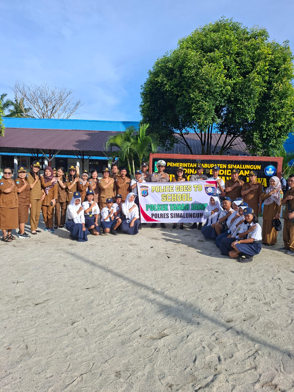 Kegiatan sosialisasi turut dihadiri Kepala Sekolah SMP Negeri 1 Tanah Jawa Anggun Nita Sianturi, S.Pd., S.Psi., Panit Binmas Aiptu M. Sihombing, Bhabinkamtibmas Aiptu AL Siahaan, para guru, serta ratusan siswa.