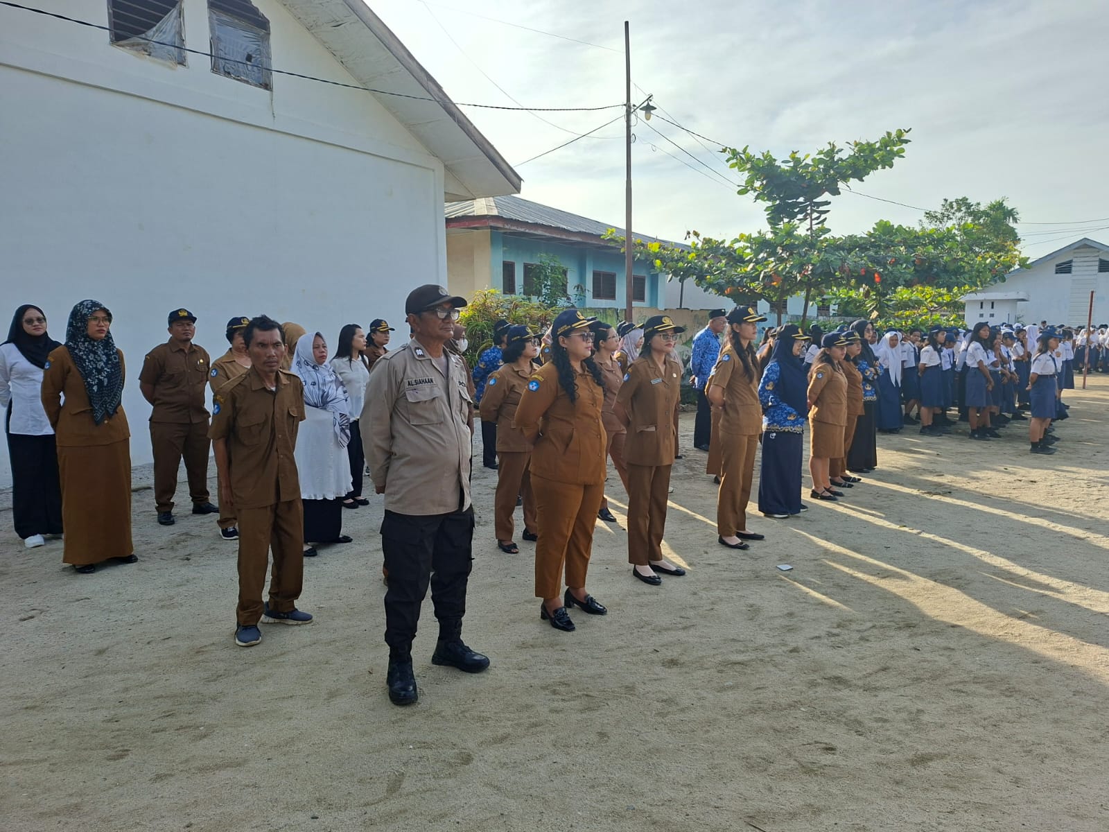 Kapolsek Tanah Jawa Kompol Asmon Bufitra, S.H., M.H., menugaskan Kanit Lantas Ipda P. Paranginagin sebagai pembina upacara sekaligus penyampai materi.