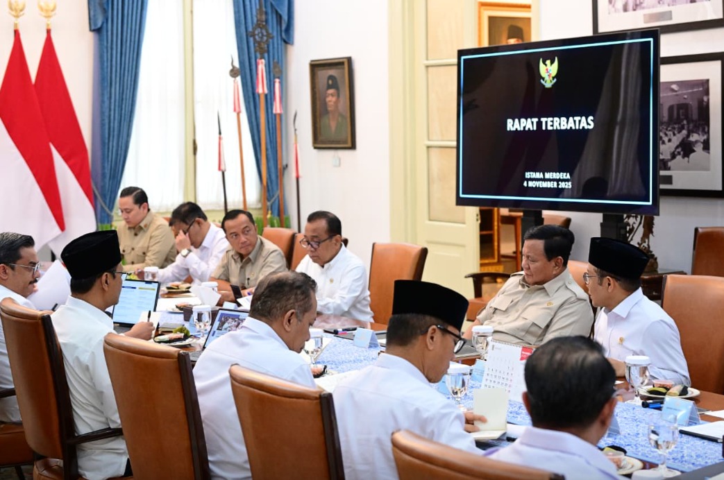 JAKARTA – Presiden Prabowo Subianto memimpin rapat terbatas bersama jajaran menteri Kabinet Merah Putih di bawah koordinasi Kementerian Koordinator Bidang Pemberdayaan Masyarakat di Istana Merdeka, Jakarta, Selasa (4/11/2025). Rapat tersebut membahas sejumlah langkah strategis pemerintah dalam memperkuat program pemberdayaan masyarakat.