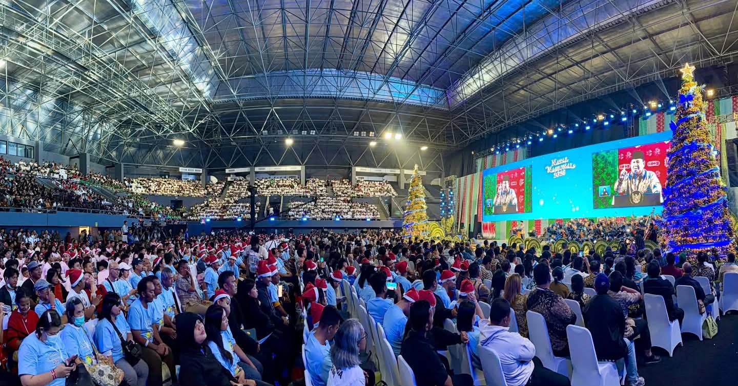 JAKARTA– Presiden Republik Indonesia, Prabowo Subianto, menghadiri Puncak Peringatan Natal Nasional Tahun 2025 yang digelar di Tennis Indoor Senayan, Jakarta, Senin (5/1/2026).