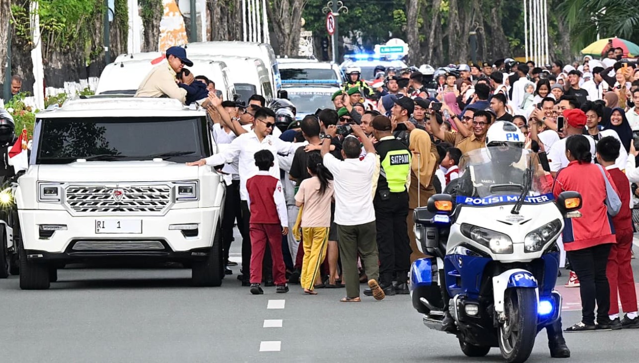 Presiden Prabowo pun menyapa masyarakat dari atas kendaraan kepresidenan dengan melambaikan tangan dan senyum hangat. Suasana penuh semangat tersebut mencerminkan dukungan masyarakat terhadap kepemimpinan Presiden Prabowo serta keberlanjutan pembangunan nasional, termasuk pembangunan Ibu Kota Nusantara sebagai simbol transformasi Indonesia ke depan.
