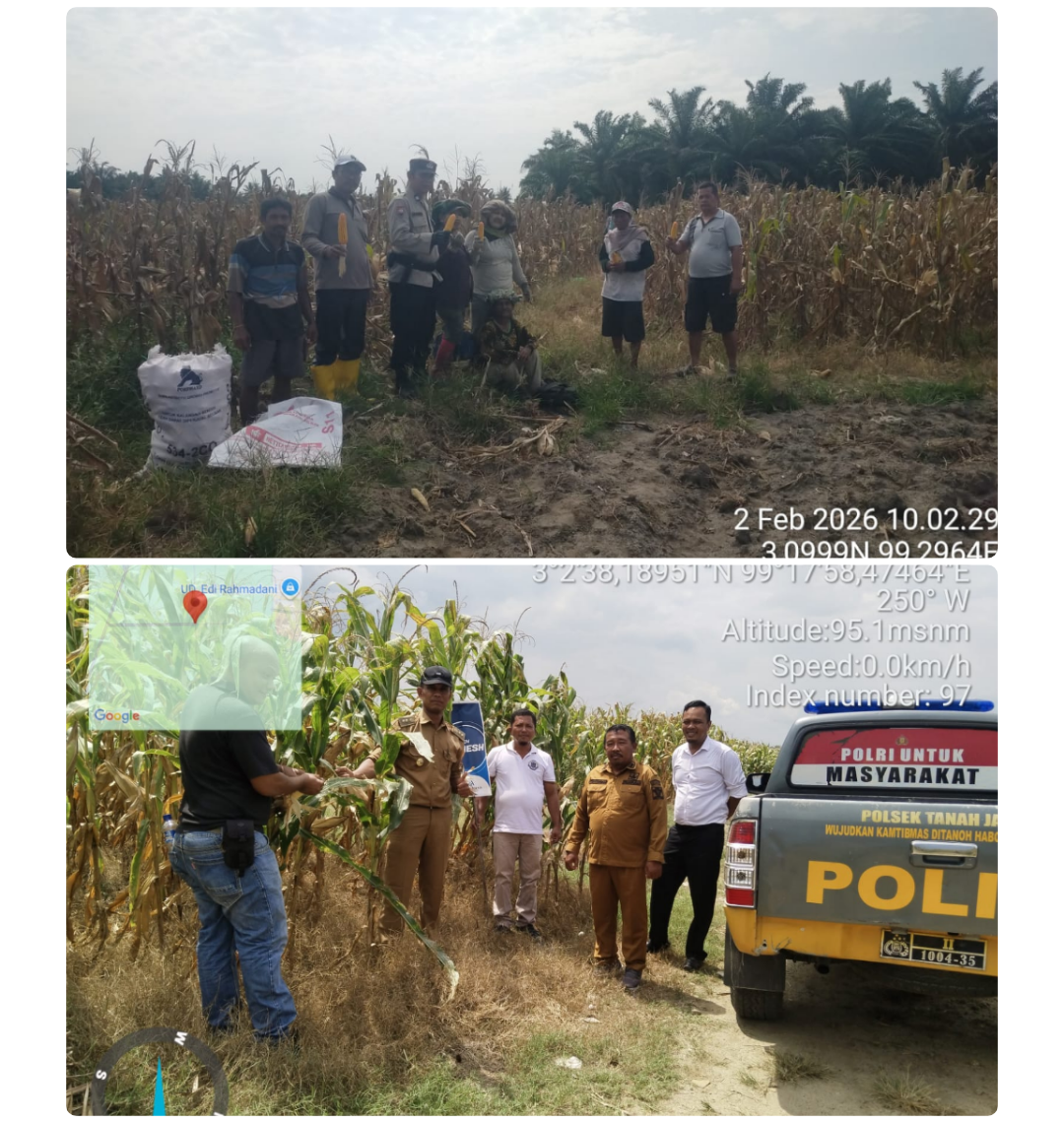 SIMALUNGUN – Program ketahanan pangan berbasis desa yang digalakkan Kepolisian Republik Indonesia mulai menunjukkan hasil nyata. Polsek Perdagangan, Polres Simalungun, memfasilitasi panen raya jagung hibrida seluas 30 rante atau sekitar 4,8 hektare di Nagori Pematang Kerasaan Rejo, Kecamatan Bandar. Kegiatan ini menjadi bagian dari dukungan Polri terhadap program 100 hari kerja Presiden Republik Indonesia di bidang ketahanan pangan nasional.