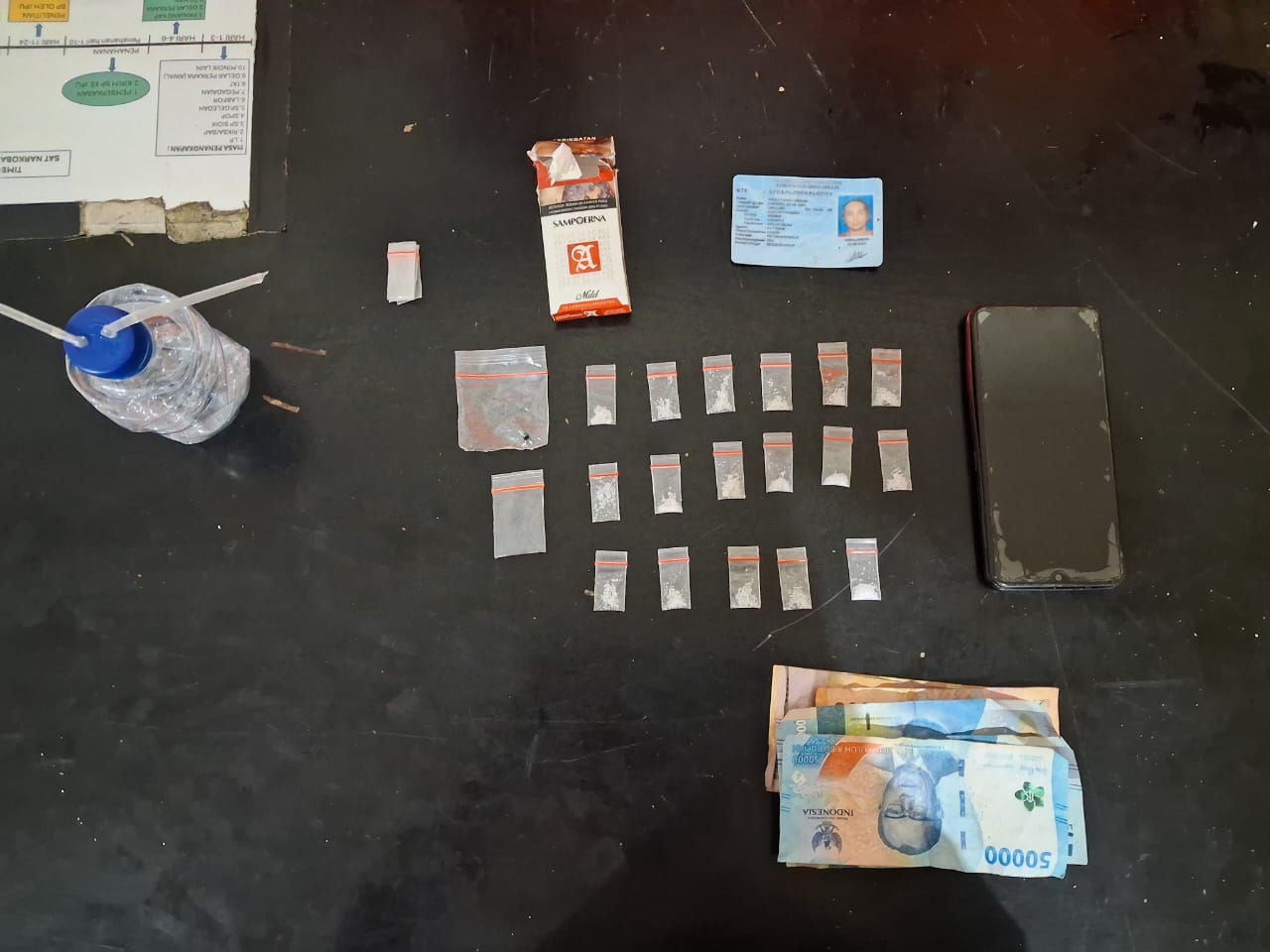 Selain sabu, barang bukti lain yang disita antara lain uang tunai Rp205.000, satu unit ponsel Vivo hitam, satu alat hisap (bong) dari botol plastik, satu kotak rokok, dua plastik klip besar kosong, dan empat plastik klip kecil kosong.