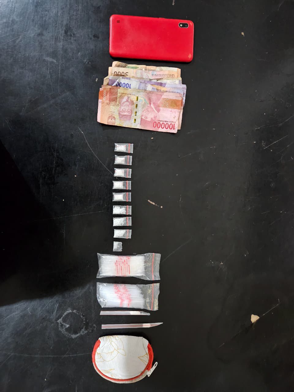 9 bungkus plastik klip kecil berisi sabu (berat brutto 2,72 gram)